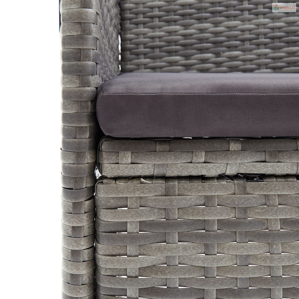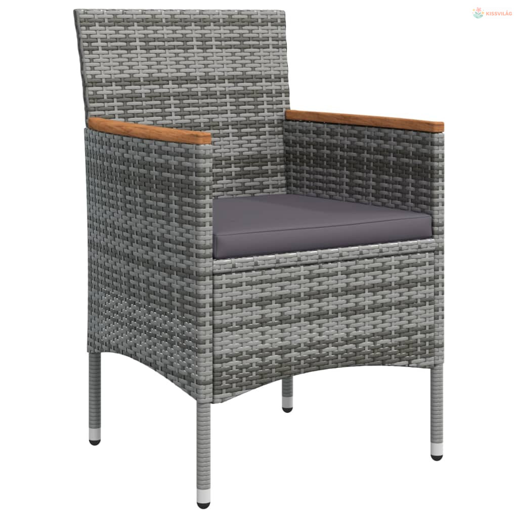7 részes szürke és fekete kerti étkezőgarnitúra párnákkal