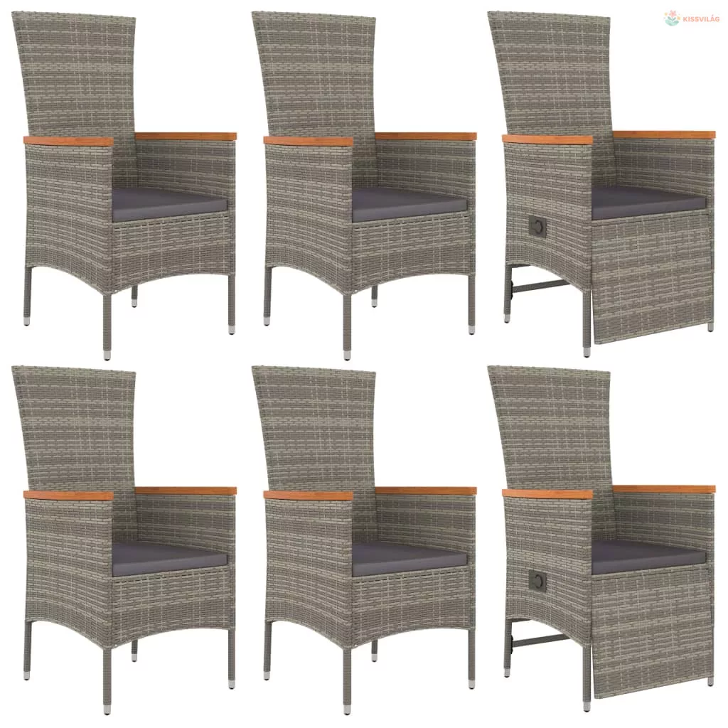 7 részes szürke polyrattan kerti étkezőgarnitúra párnával