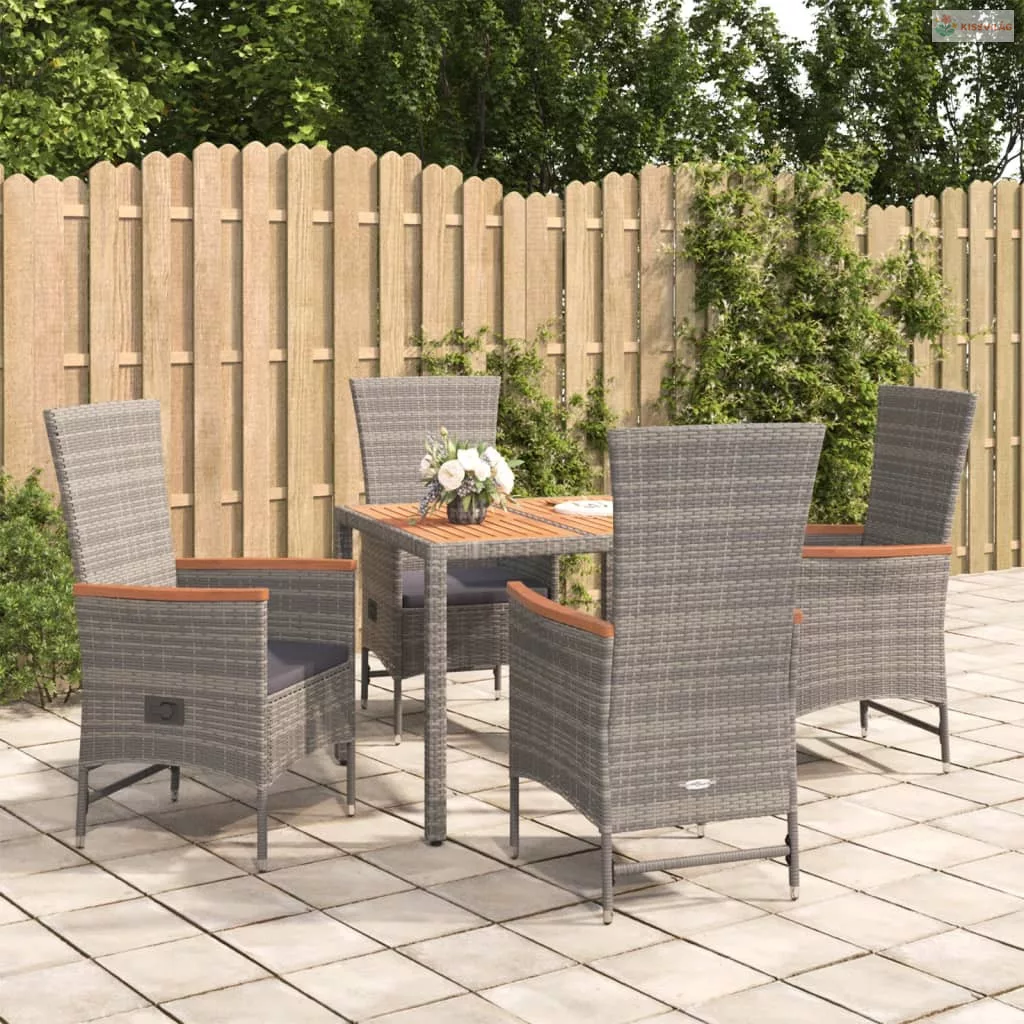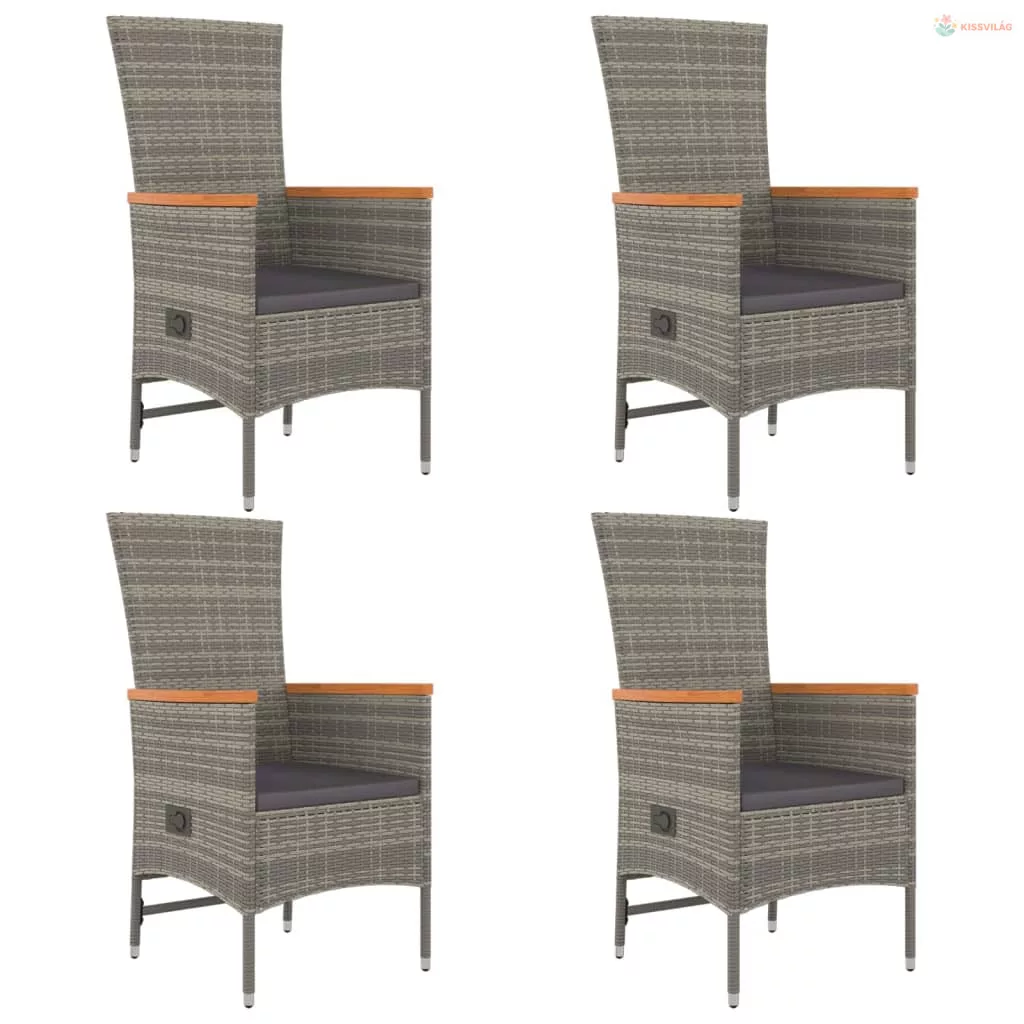 5 részes szürke polyrattan kerti étkezőgarnitúra párnával