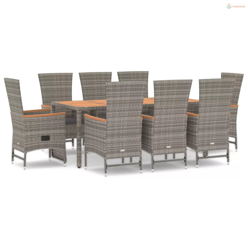 9 részes szürke polyrattan kerti étkezőgarnitúra párnával