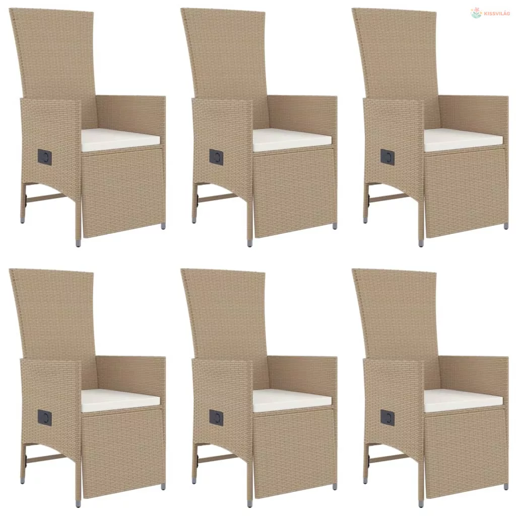 7 részes bézs polyrattan kerti étkezőgarnitúra párnákkal
