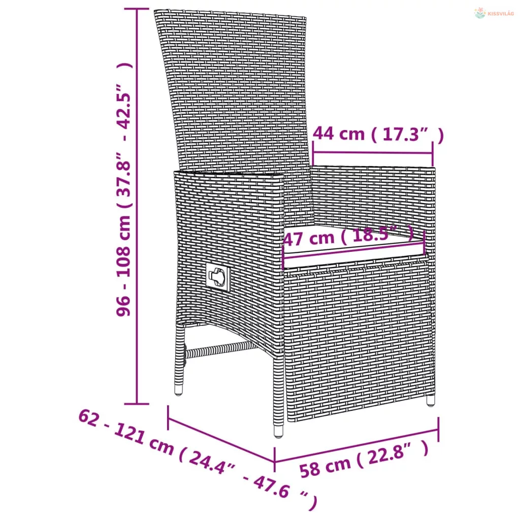 • Fekvőfunkció: A kerti székek dönthetőek, így saját igénye szerint állíthatja be a háttámlát és a lábtartót.