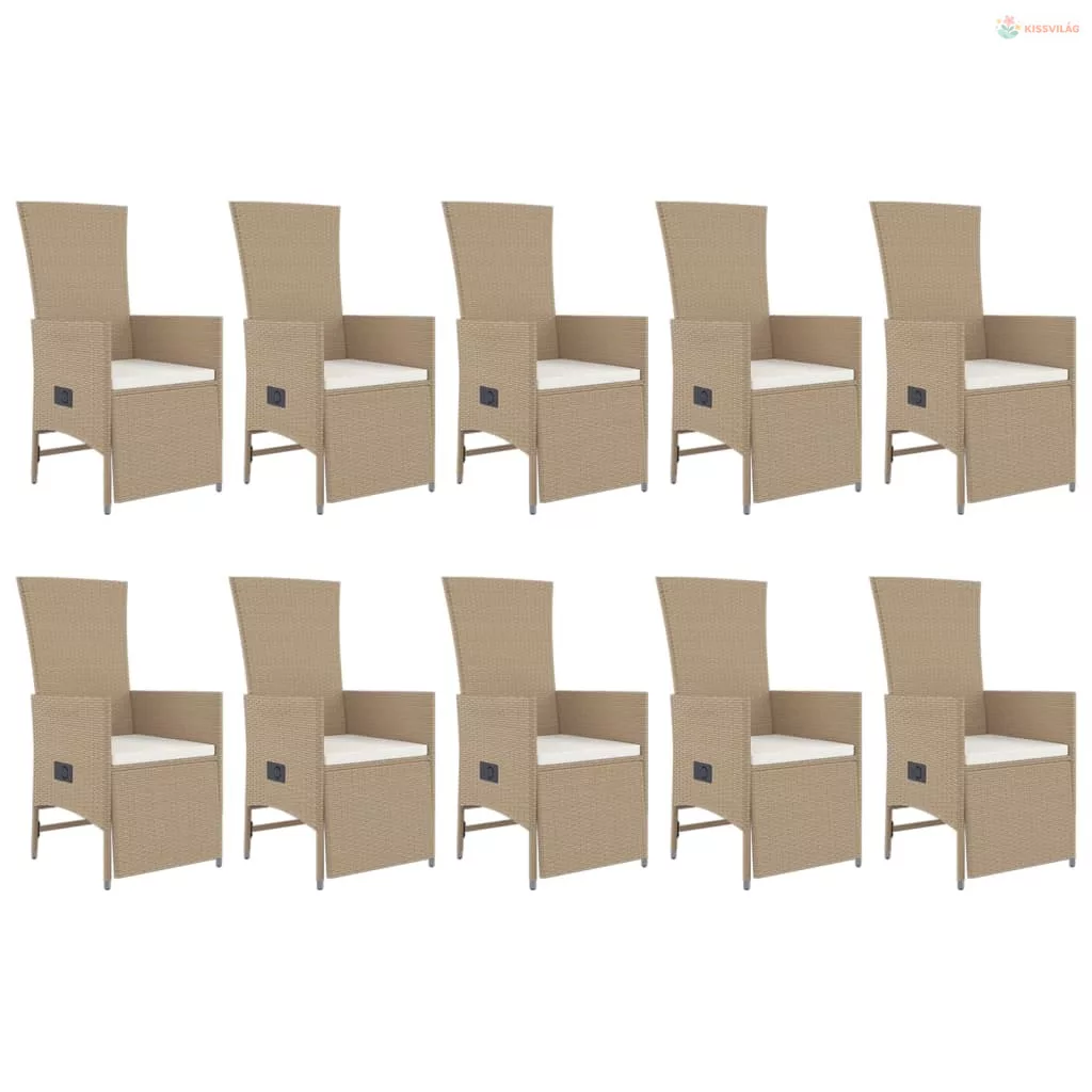 11 részes bézs polyrattan kerti étkezőgarnitúra párnákkal