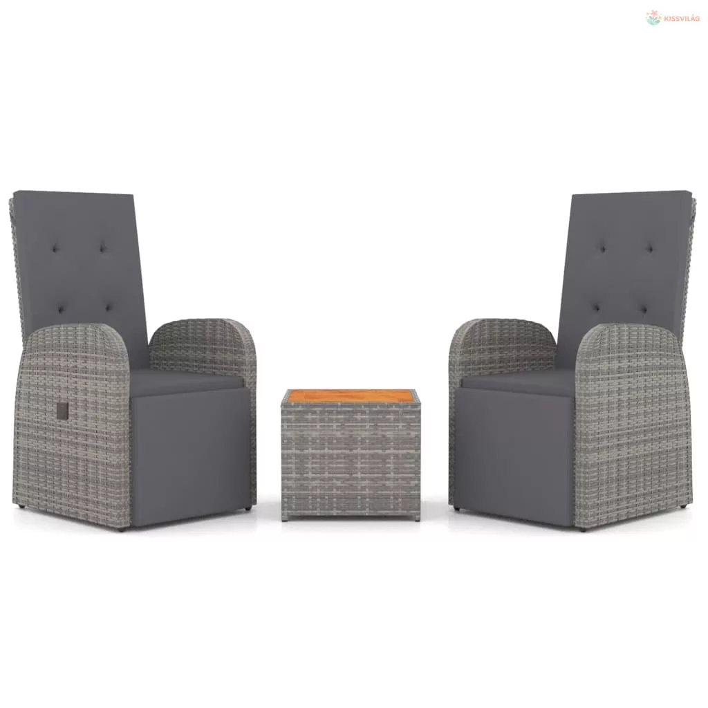 3 részes szürke polirattan/tömör akácfa kerti társalgógarnitúra