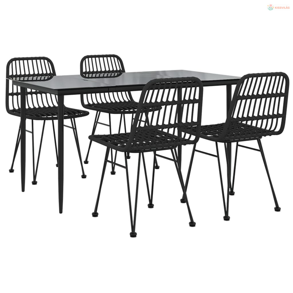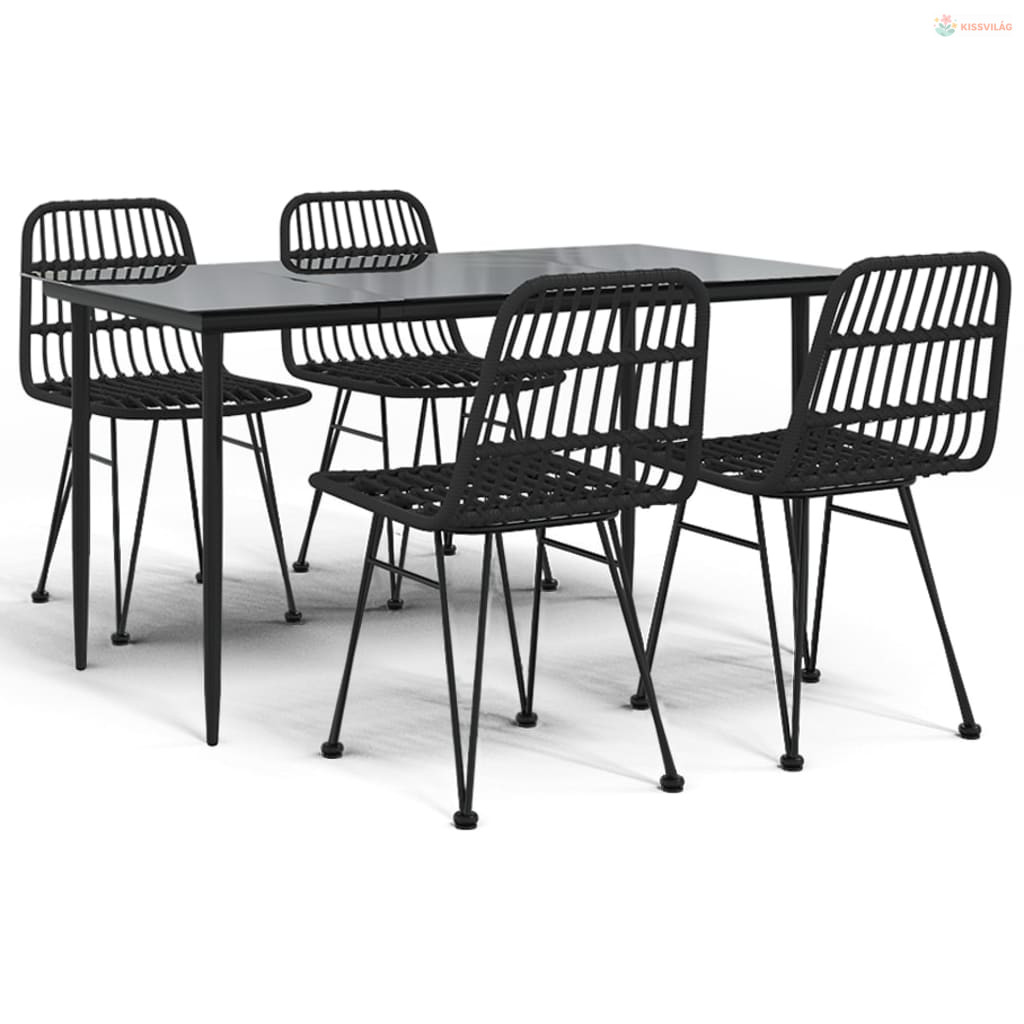 5 részes fekete polyrattan kerti étkezőgarnitúra