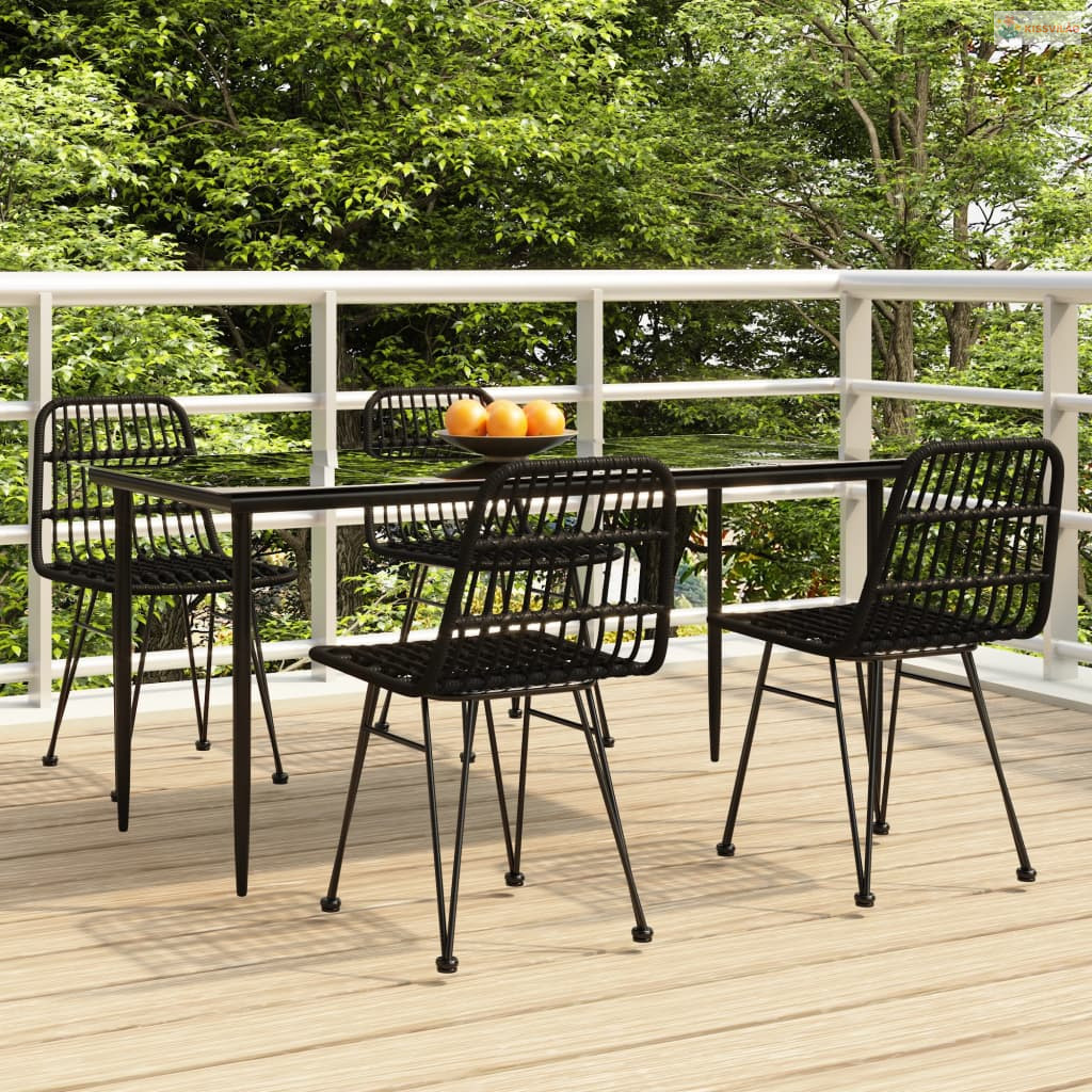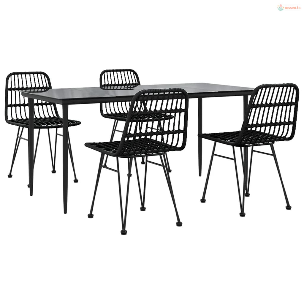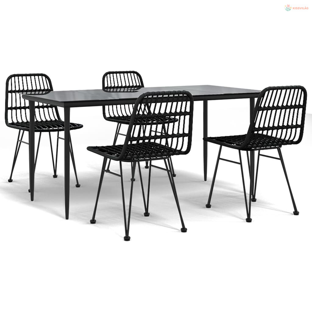 5 részes fekete polyrattan kerti étkezőgarnitúra