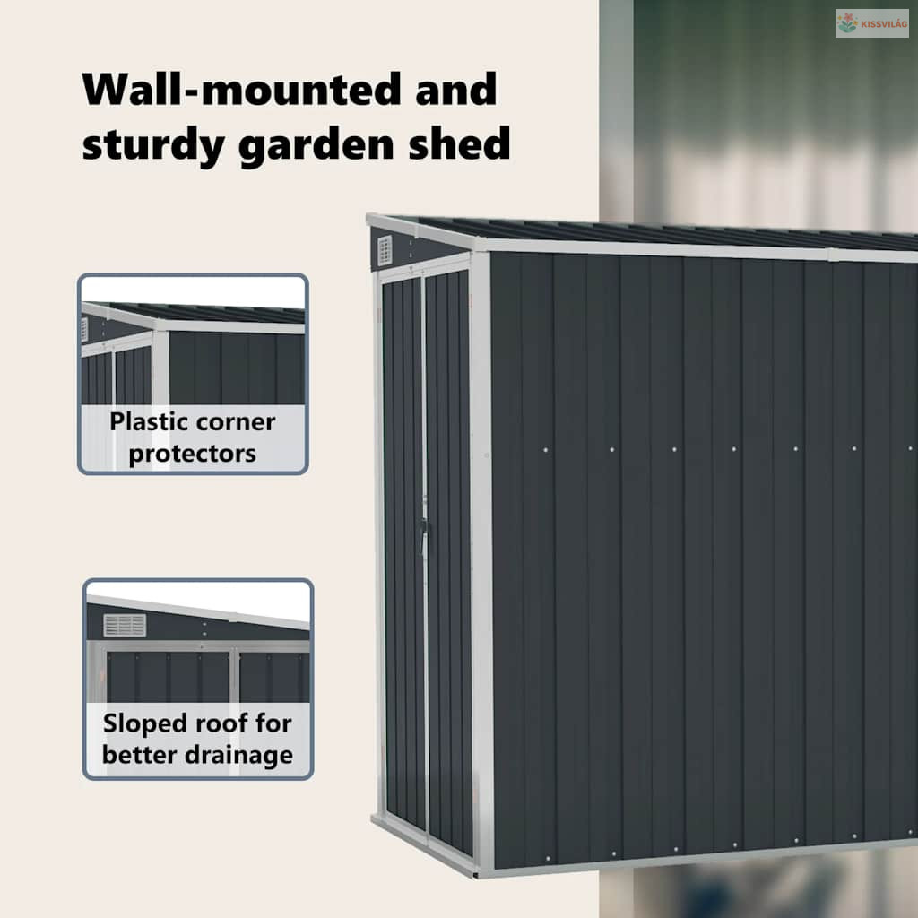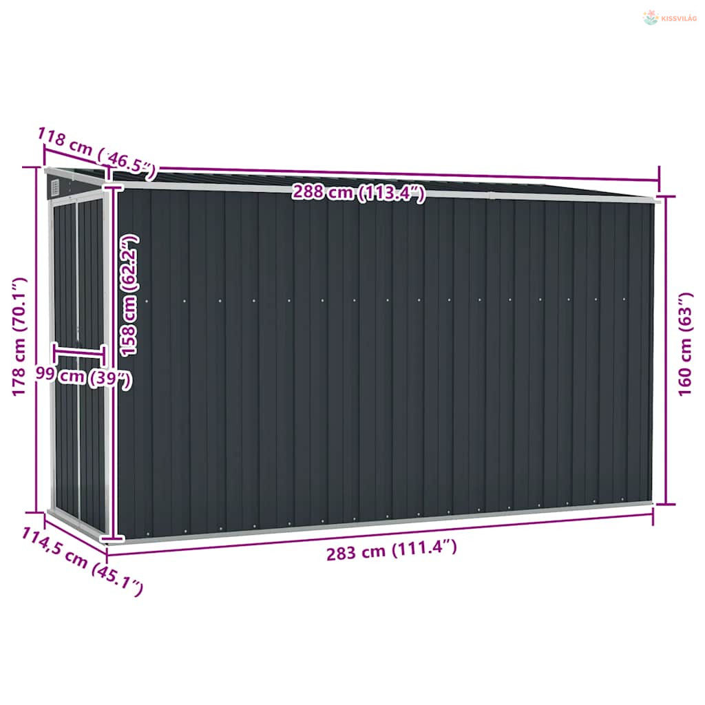 Antracitszürke acél falhoz erősíthető fészer 118 x 288 x 178 cm