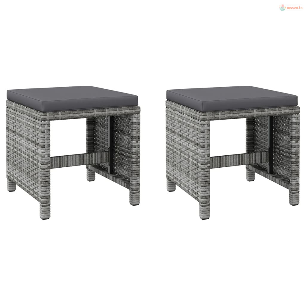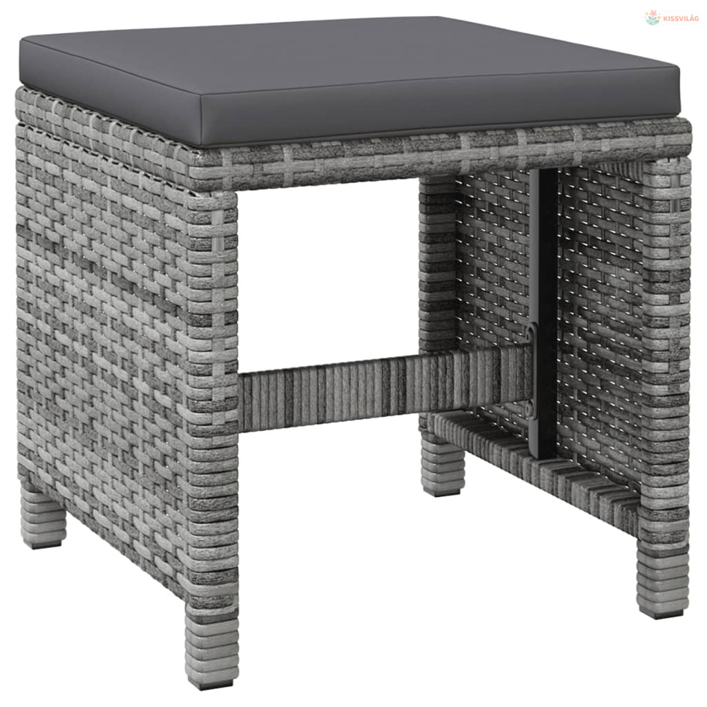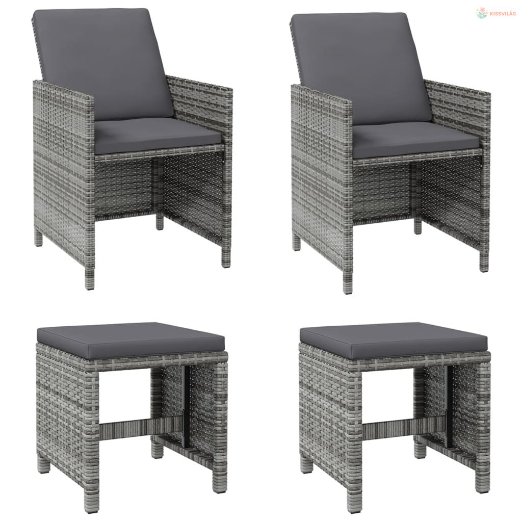 4 részes szürke kerti polyrattan szék- és zsámolyszett
