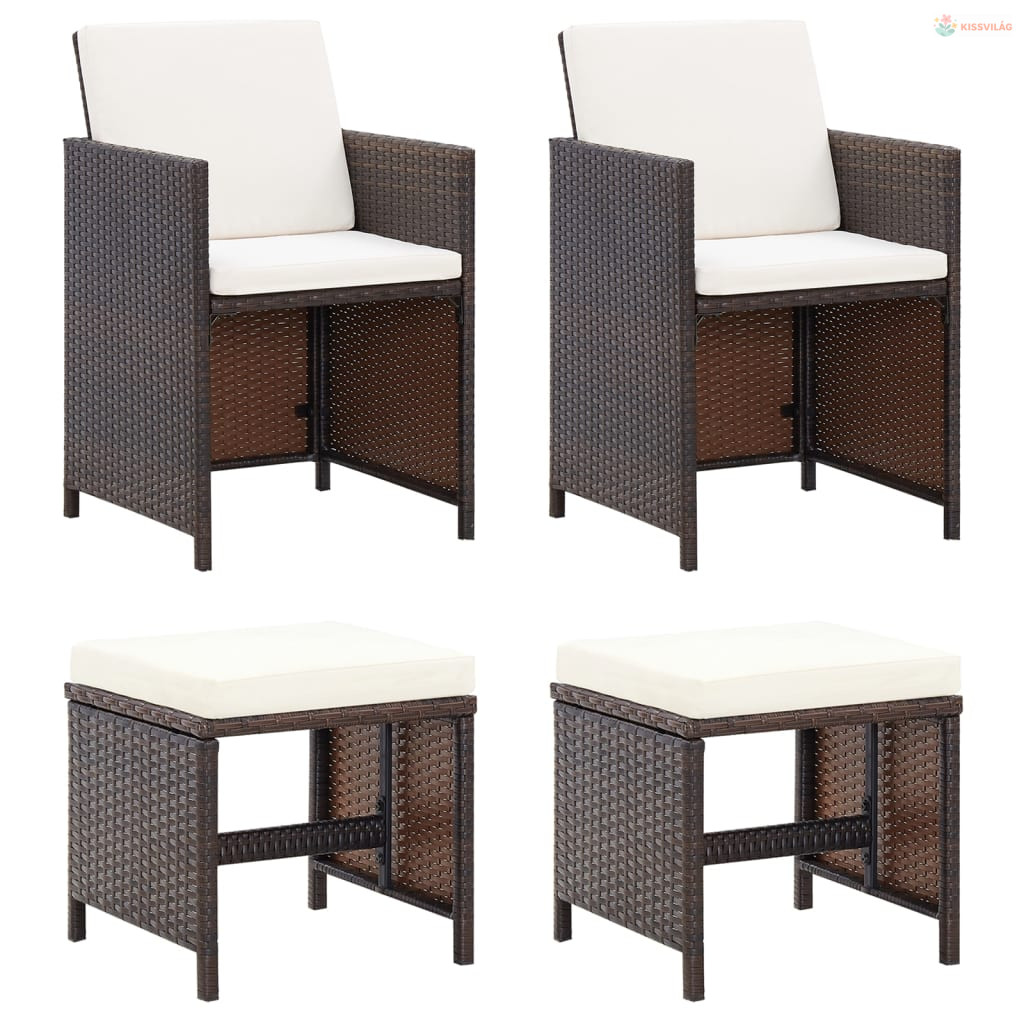 4 részes barna kerti polyrattan szék- és zsámolyszett