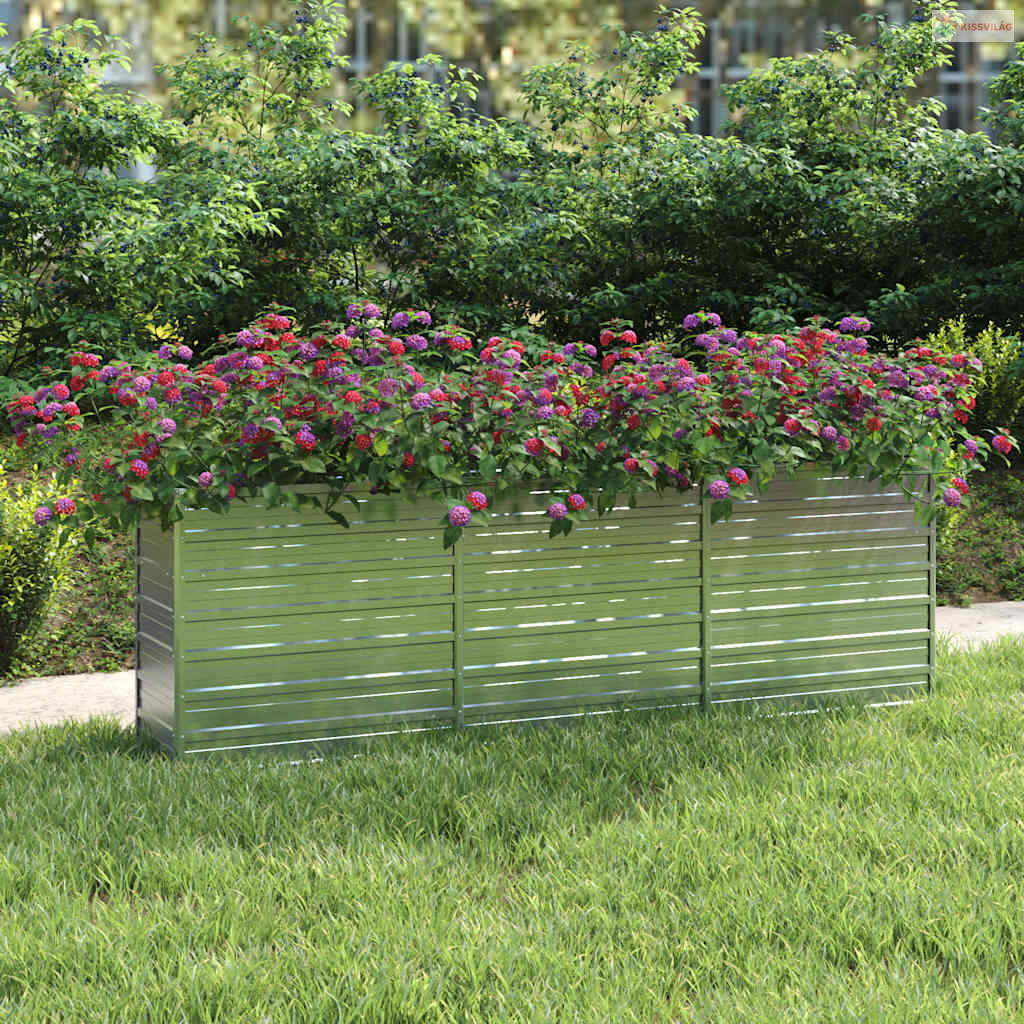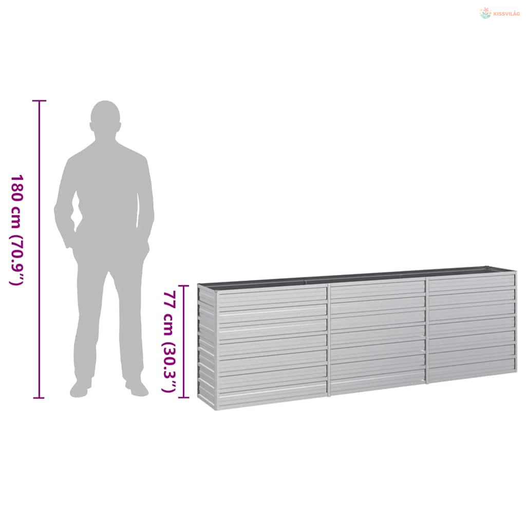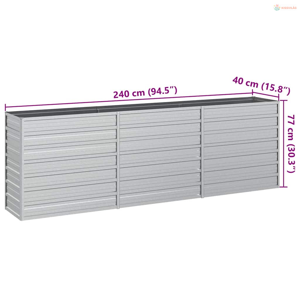 Ezüstszínű horganyzott acél kerti magaságyás 240 x 40 x 77 cm