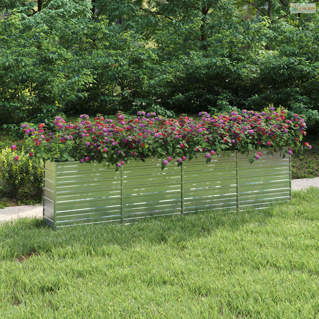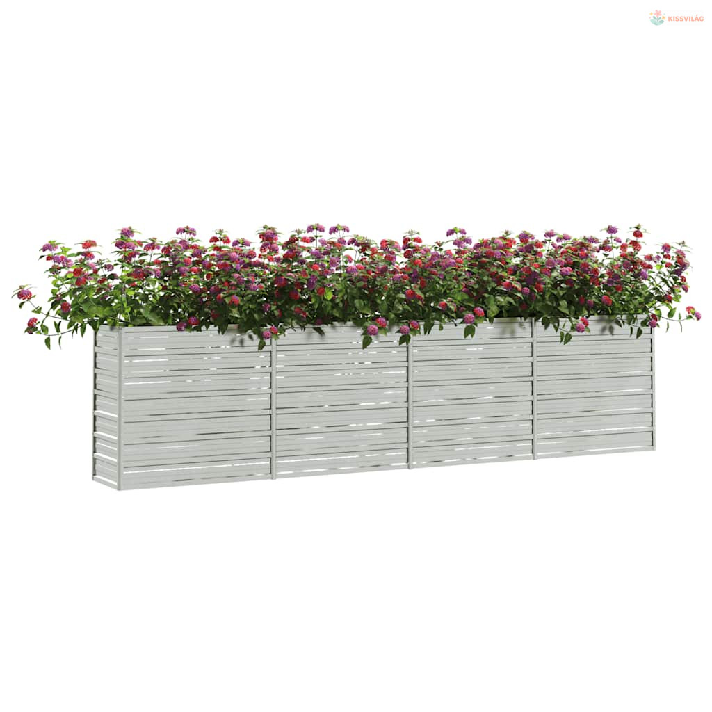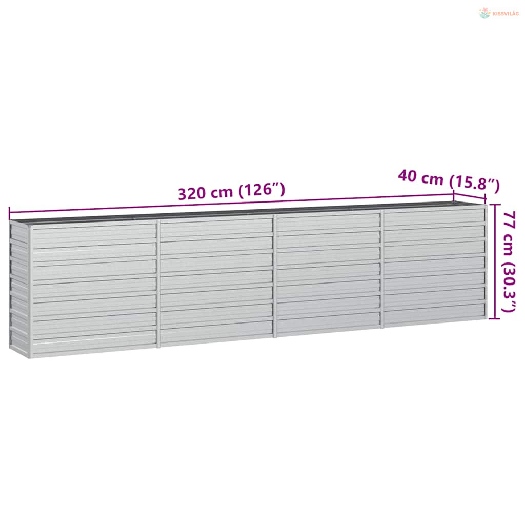 Ezüstszínű horganyzott acél kerti magaságyás 320 x 40 x 77 cm