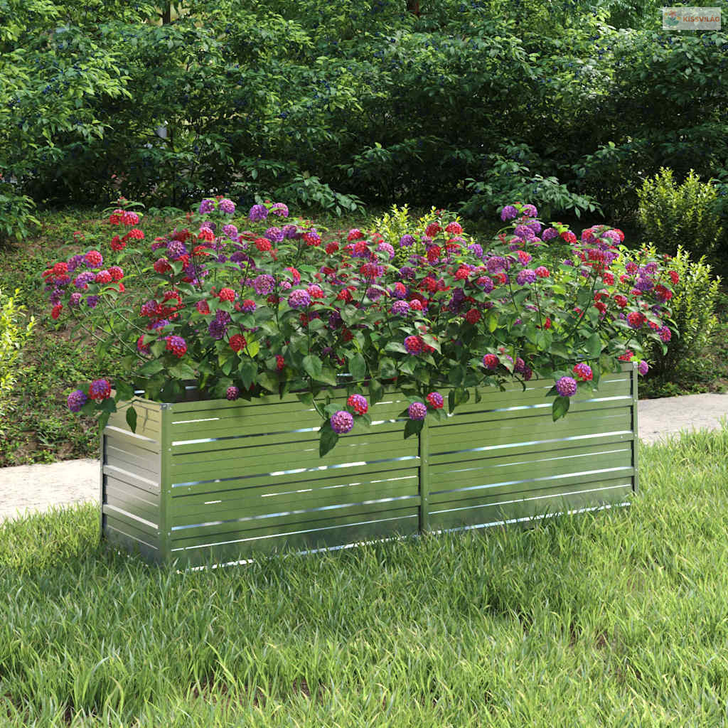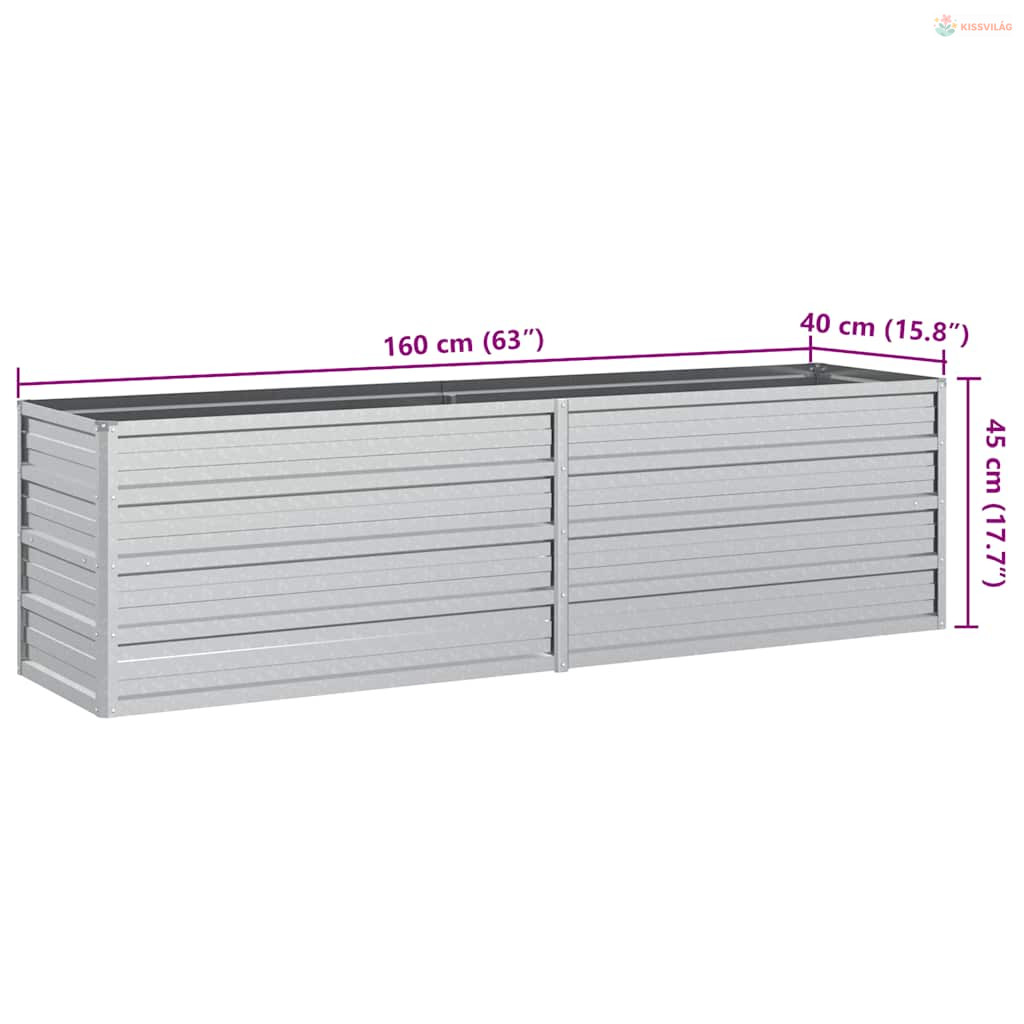 Ezüstszínű horganyzott acél kerti magaságyás 160 x 40 x 45 cm