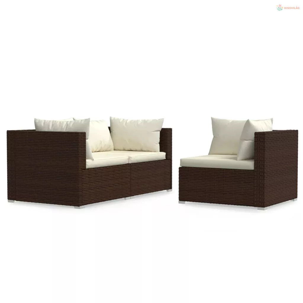 3 részes barna polyrattan kerti ülőgarnitúra párnákkal