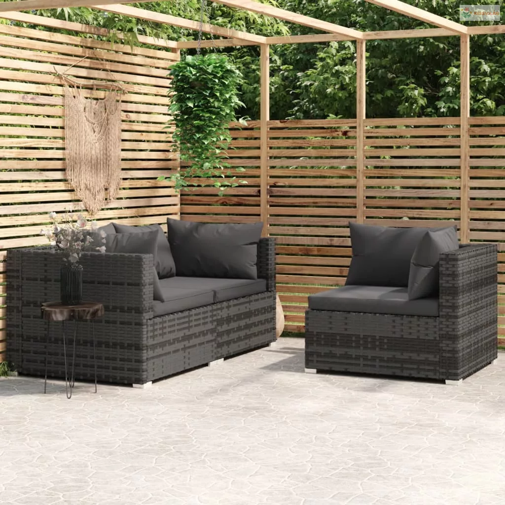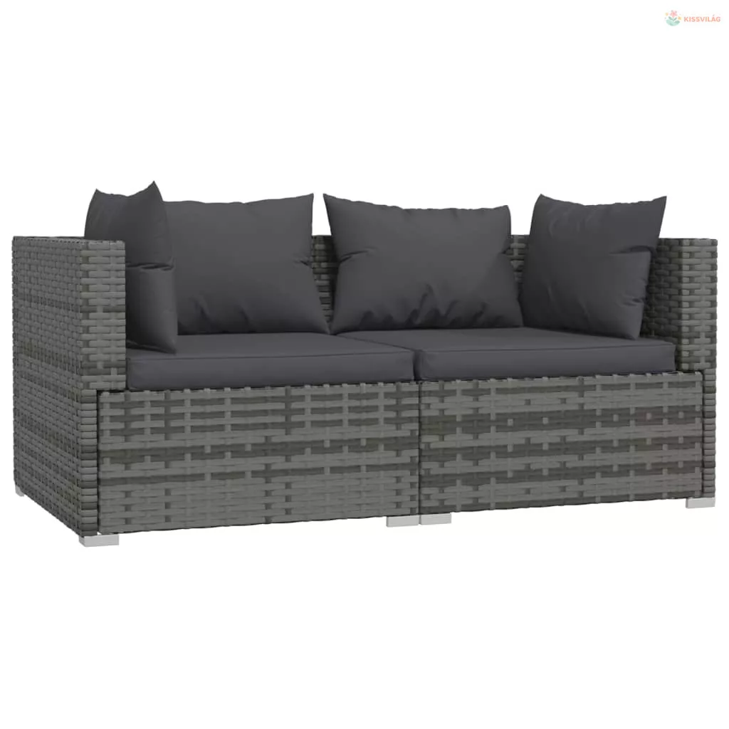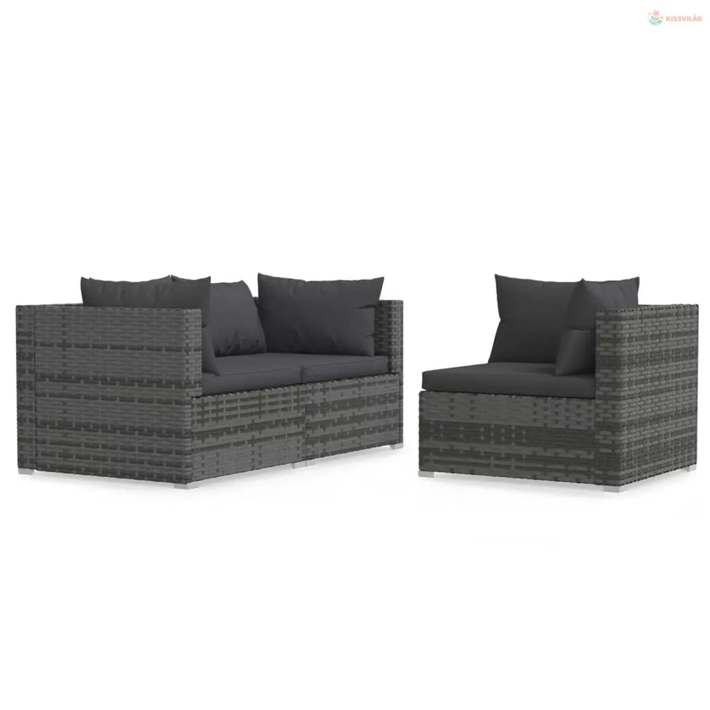 3 részes szürke polyrattan kerti ülőgarnitúra párnákkal