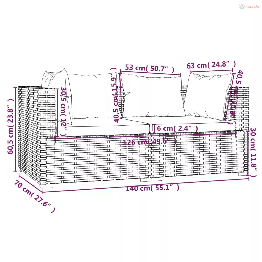 • Sarokkanapé mérete (egyenként): 70 x 70 x 60,5 cm (Ho x Szé x Ma)