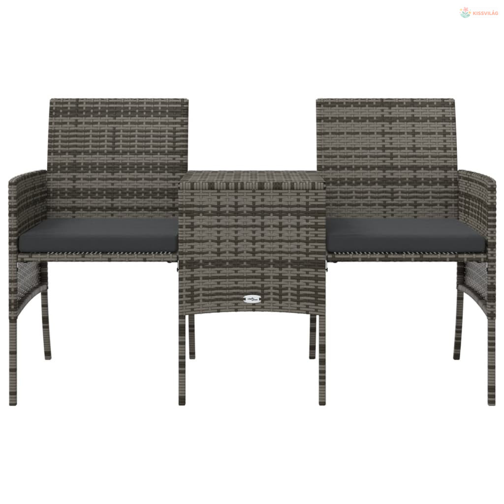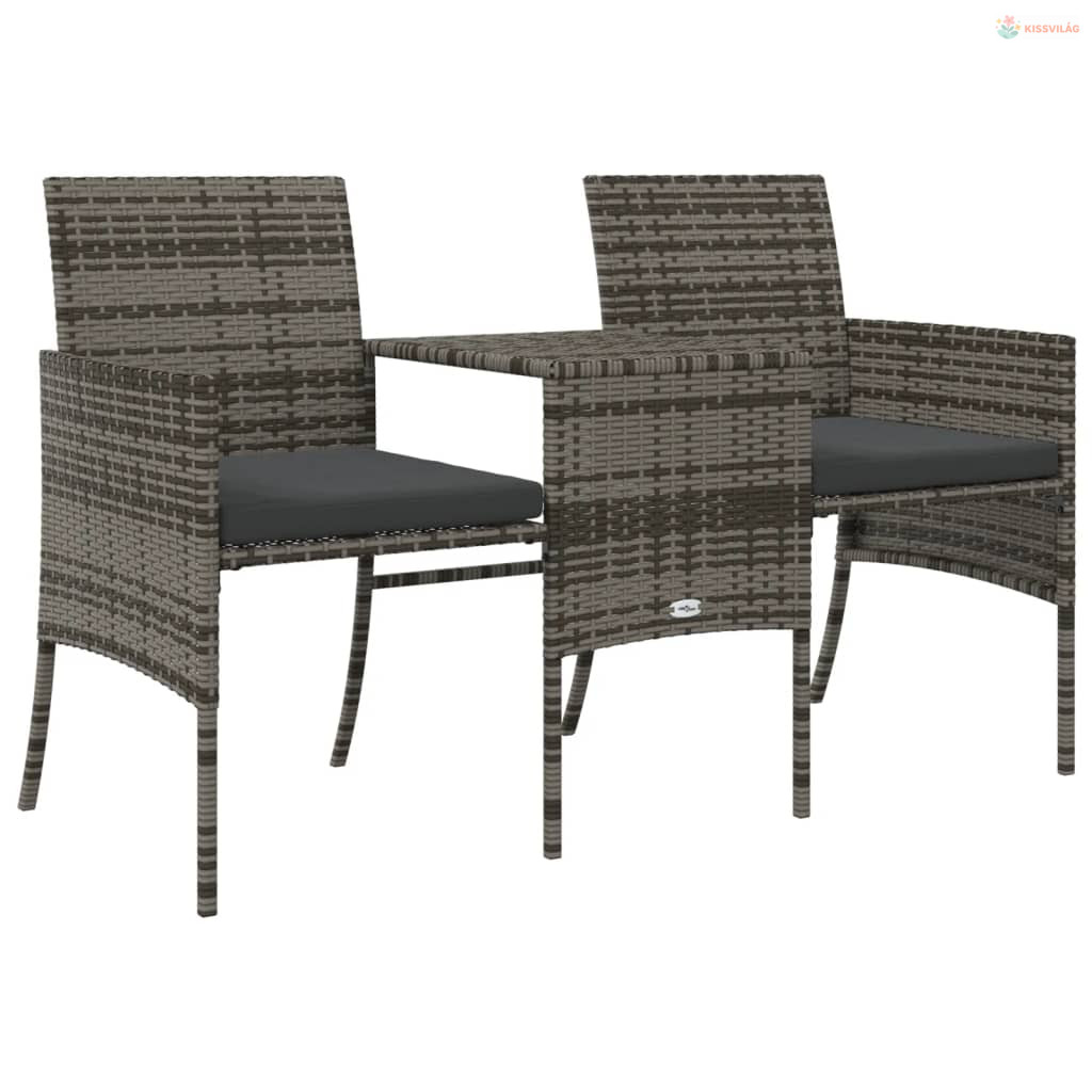 2 személyes szürke polyrattan kerti kanapé asztallal/székkel