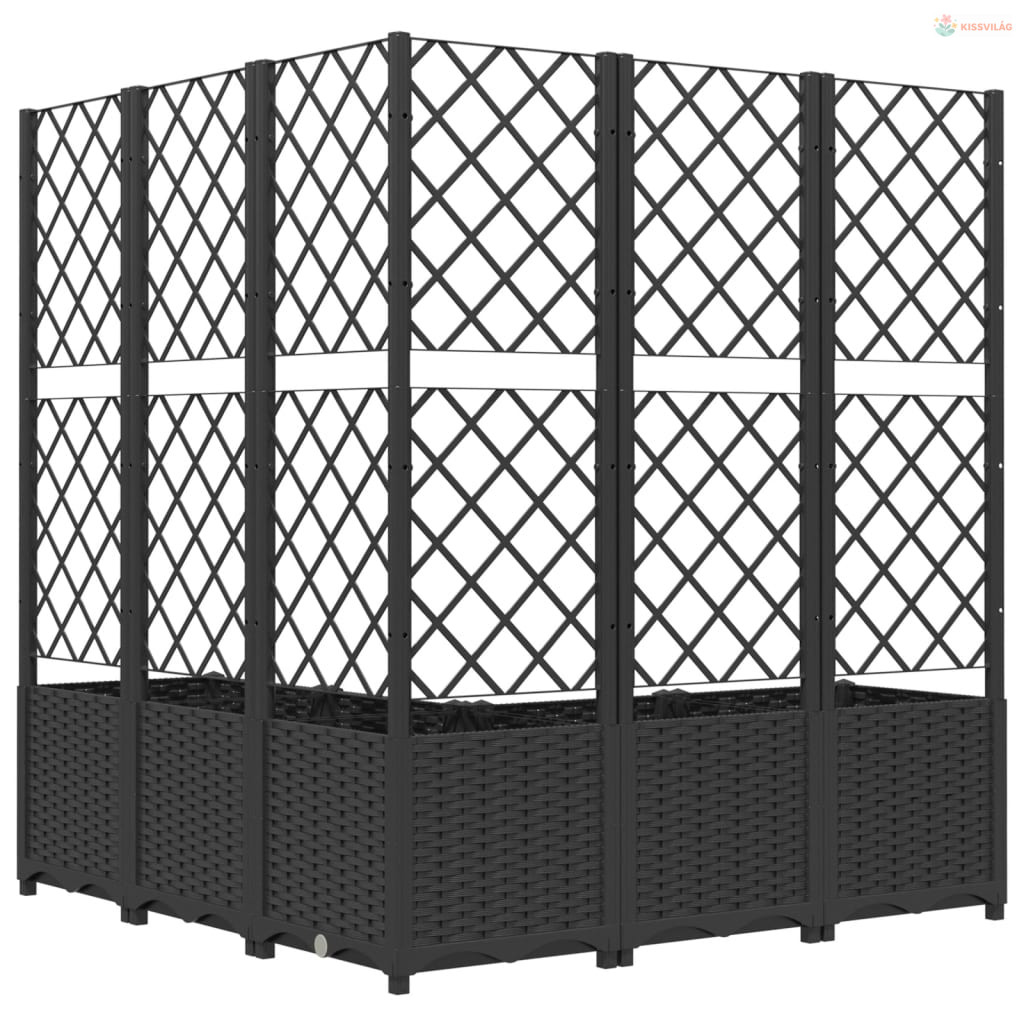 Fekete polipropilén rácsos kerti ültetőláda 120 x 120 x 136 cm