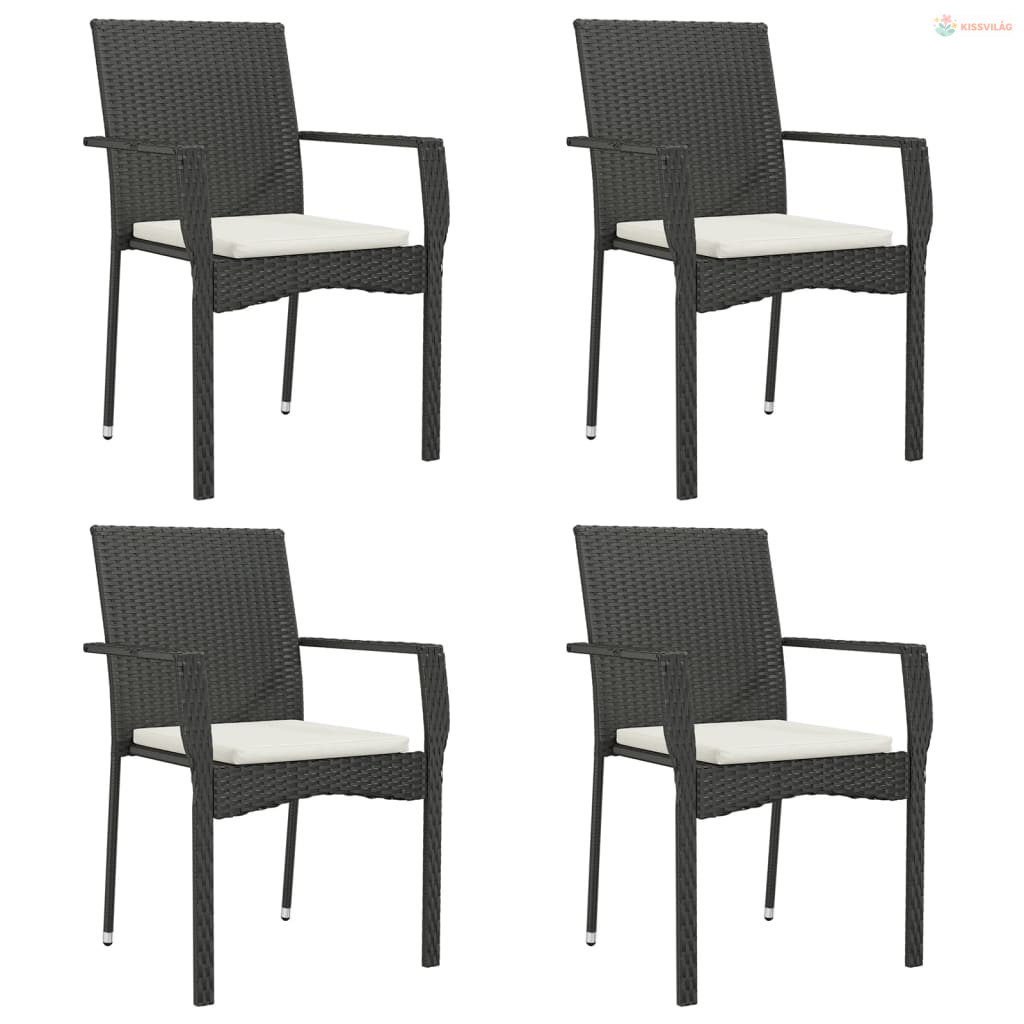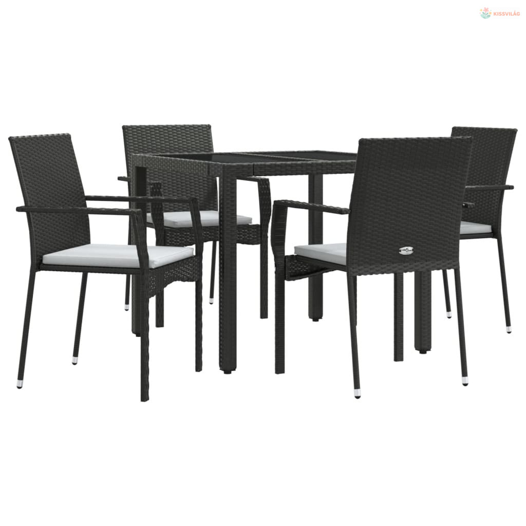 5 részes fekete polyrattan kerti étkezőgarnitúra párnákkal