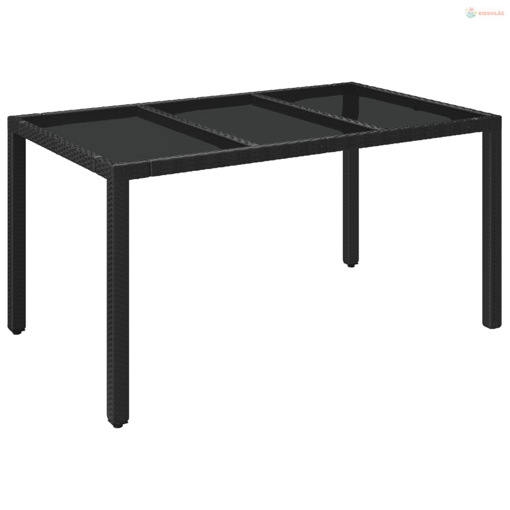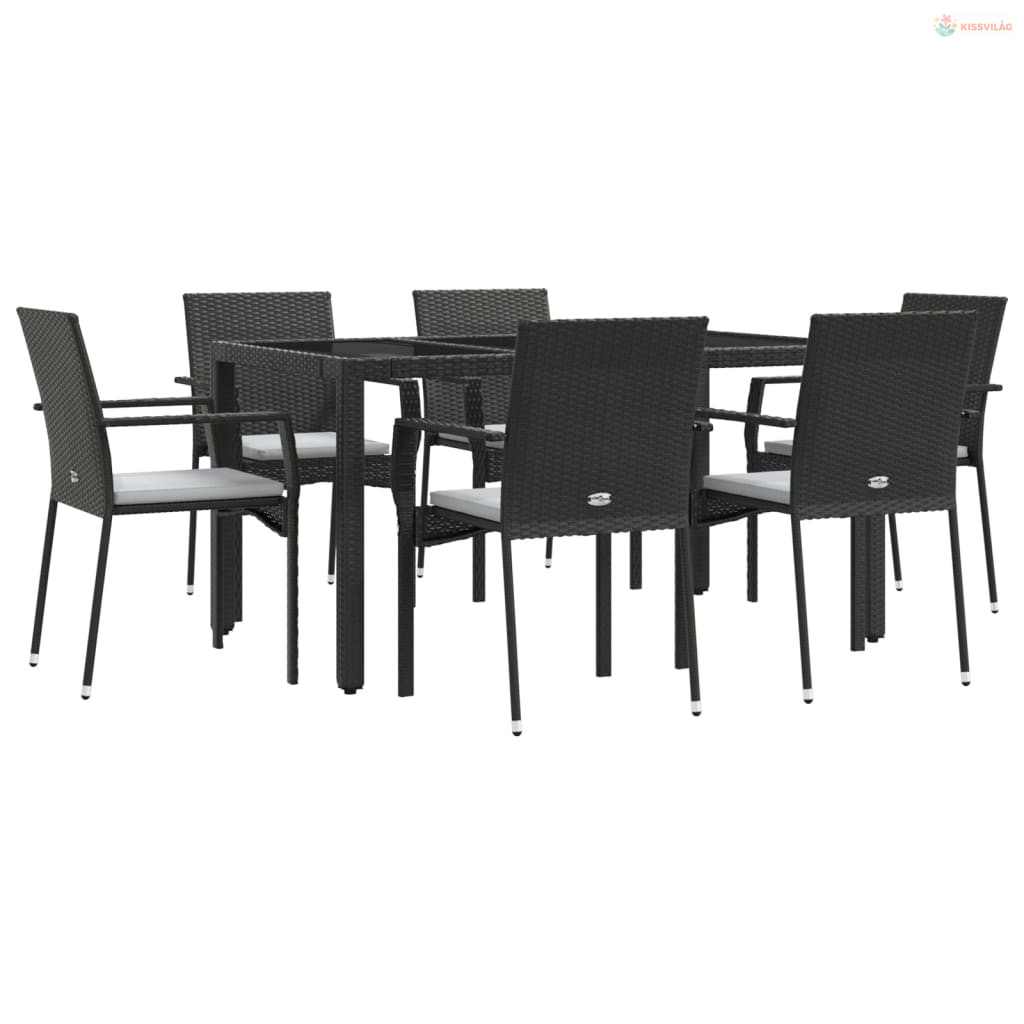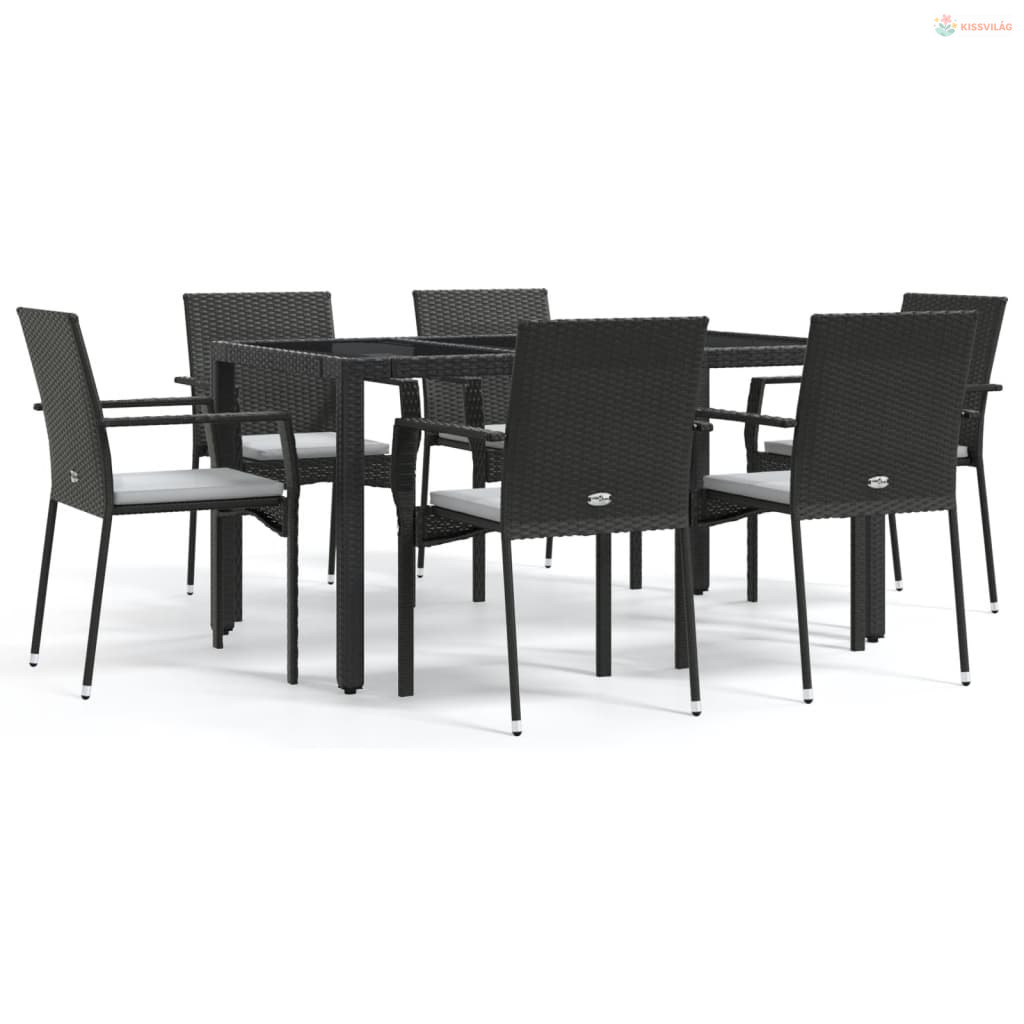 7 részes fekete polyrattan kerti étkezőgarnitúra párnával