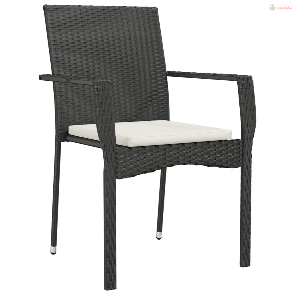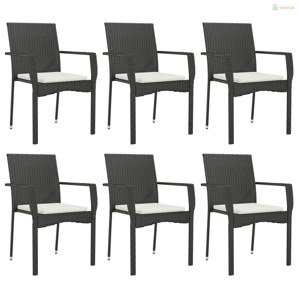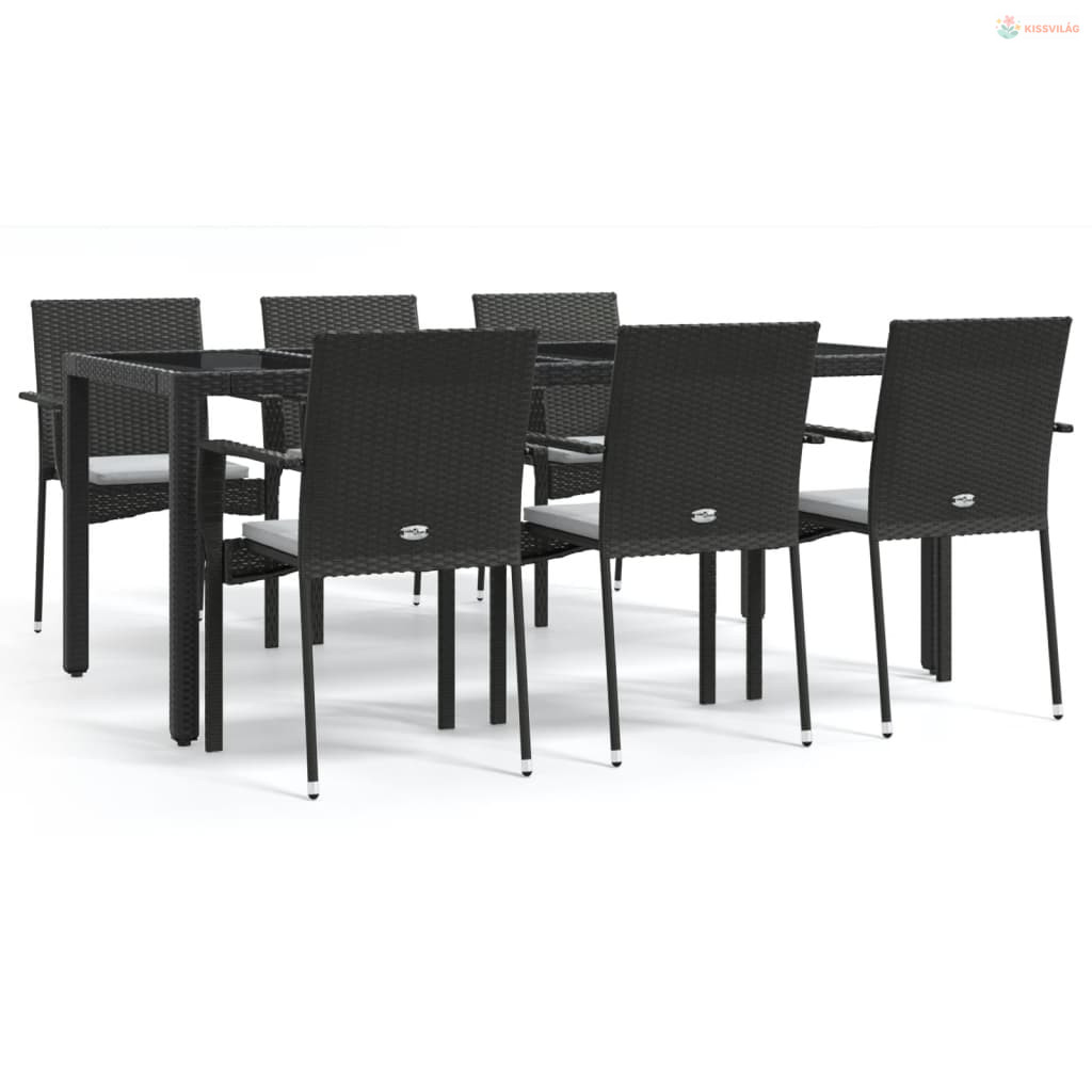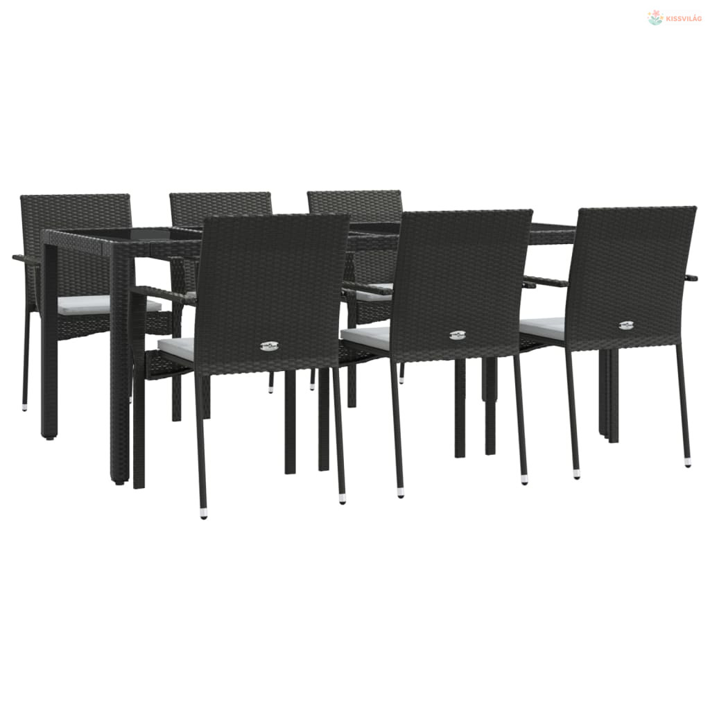 7 részes fekete polyrattan kerti étkezőgarnitúra párnával