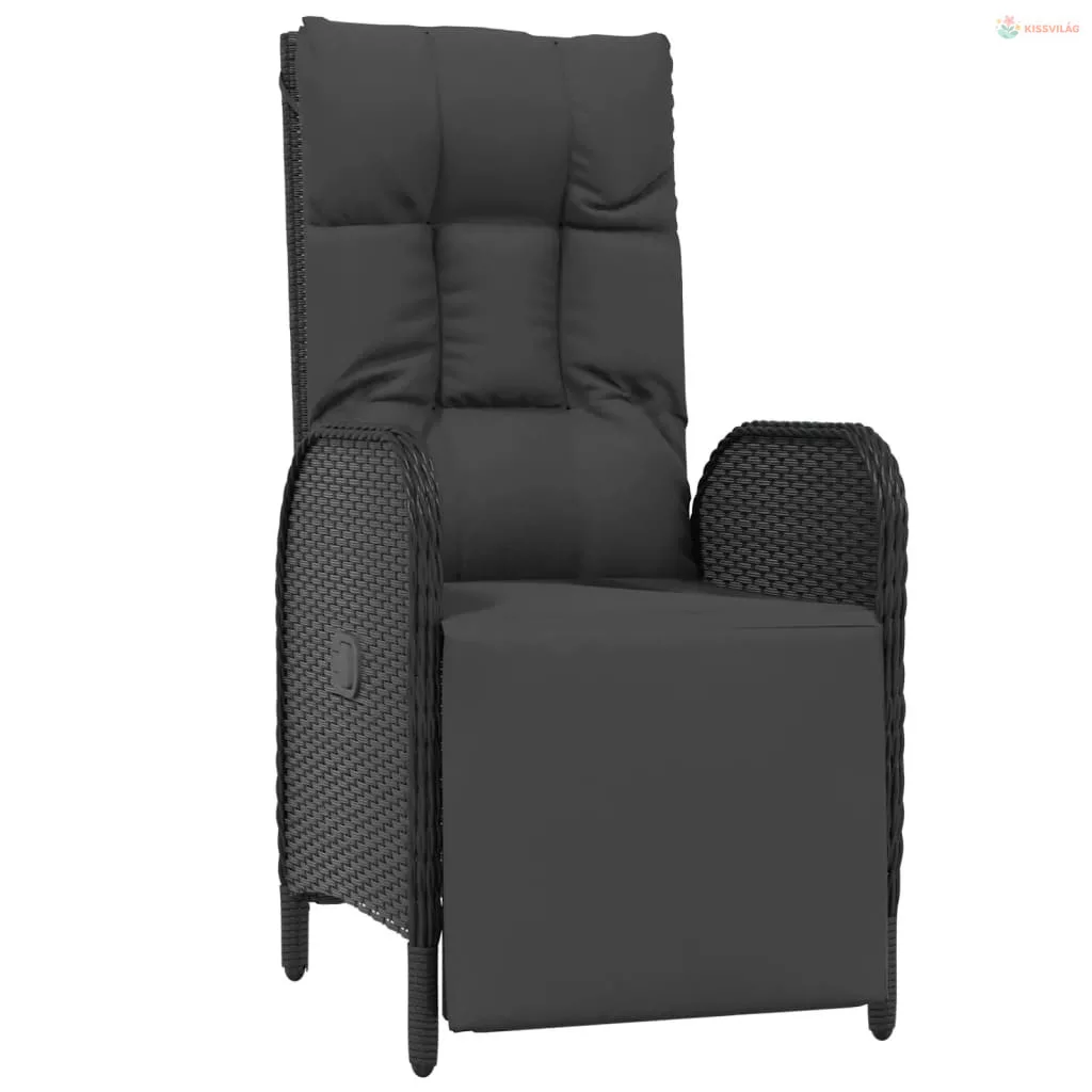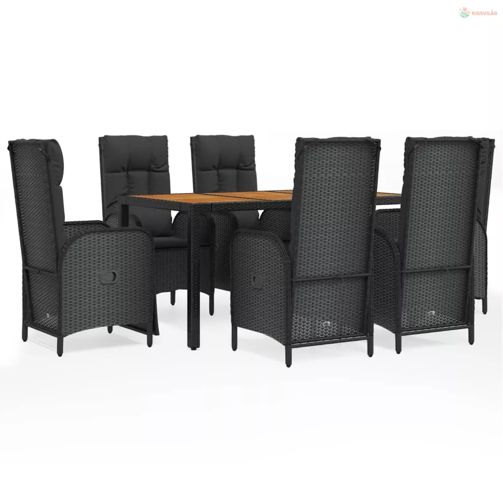 7 részes fekete polyrattan kerti étkezőgarnitúra párnával