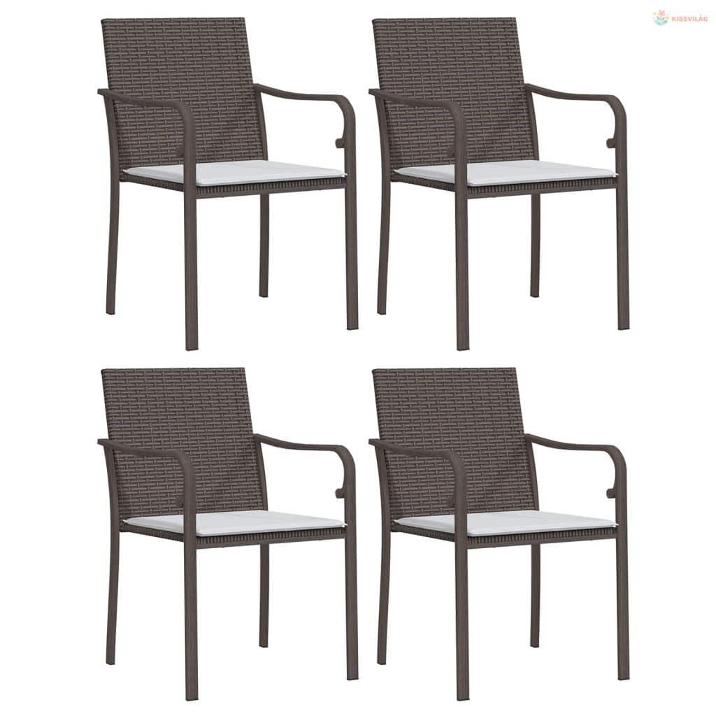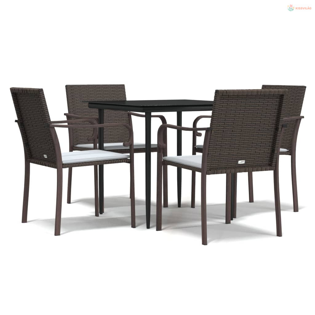 5 részes polyrattan és acél kerti étkezőgarnitúra párnával