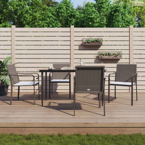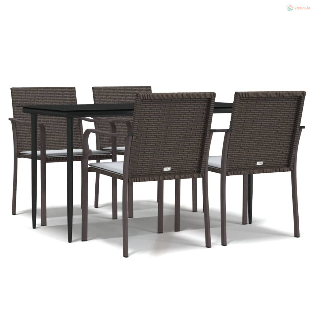 5 részes polyrattan és acél kerti étkezőgarnitúra párnával
