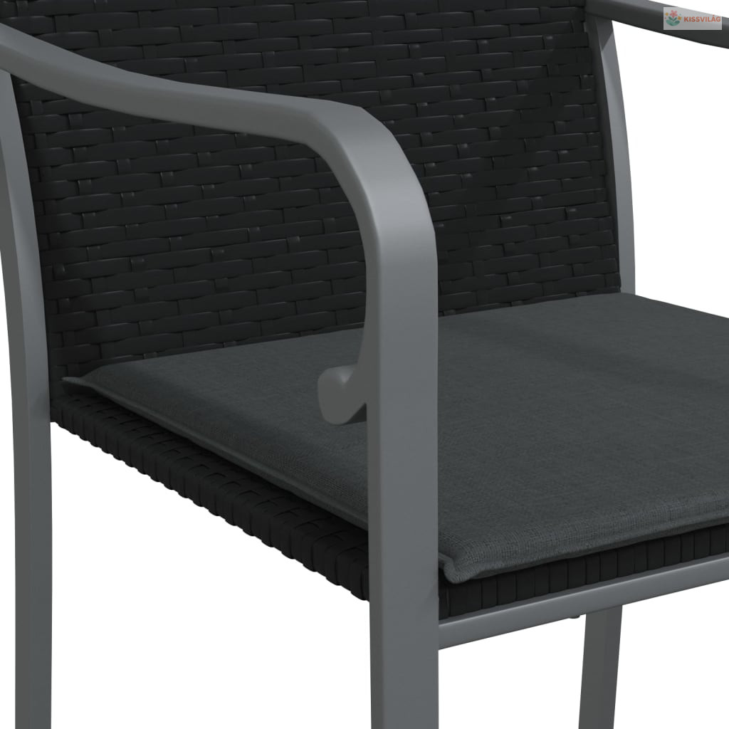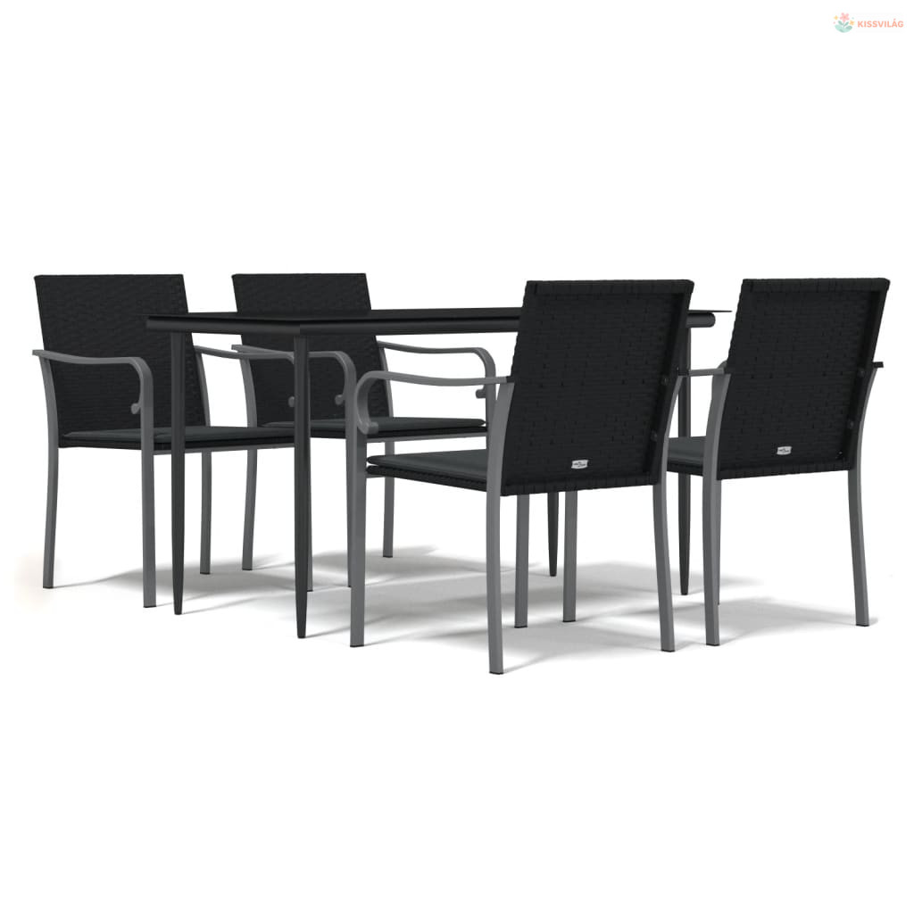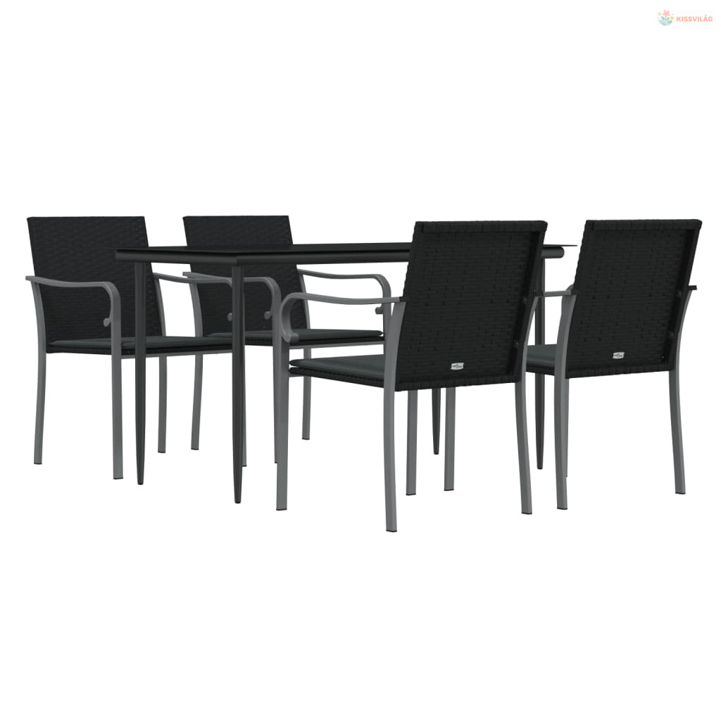 5 részes polyrattan és acél kerti étkezőgarnitúra párnával
