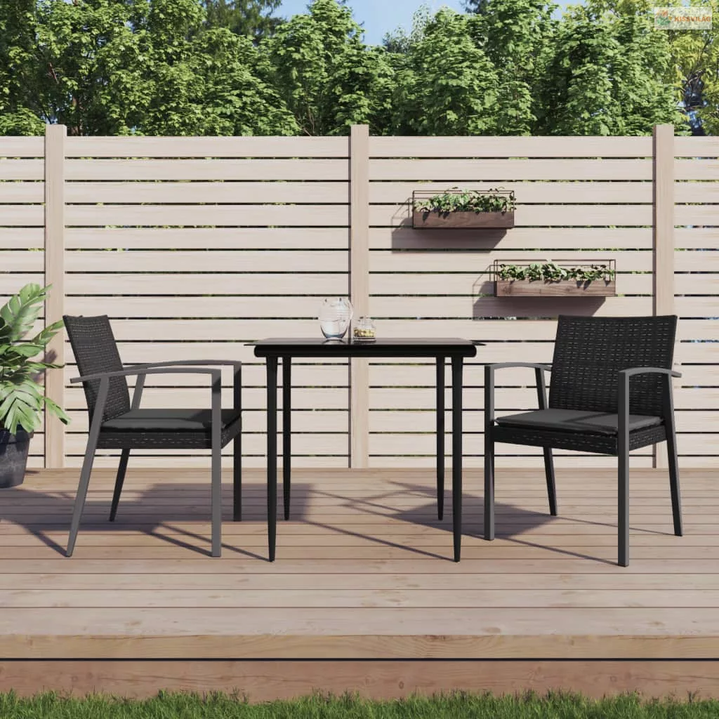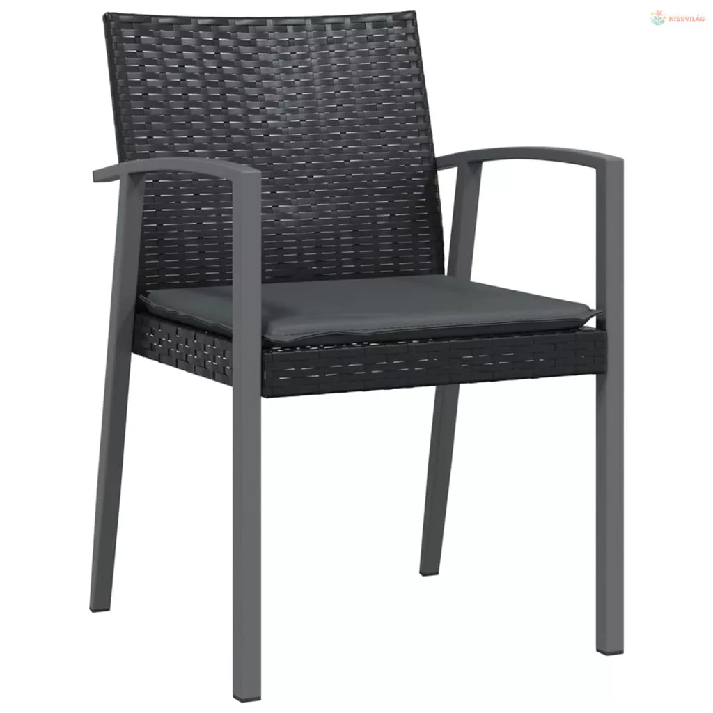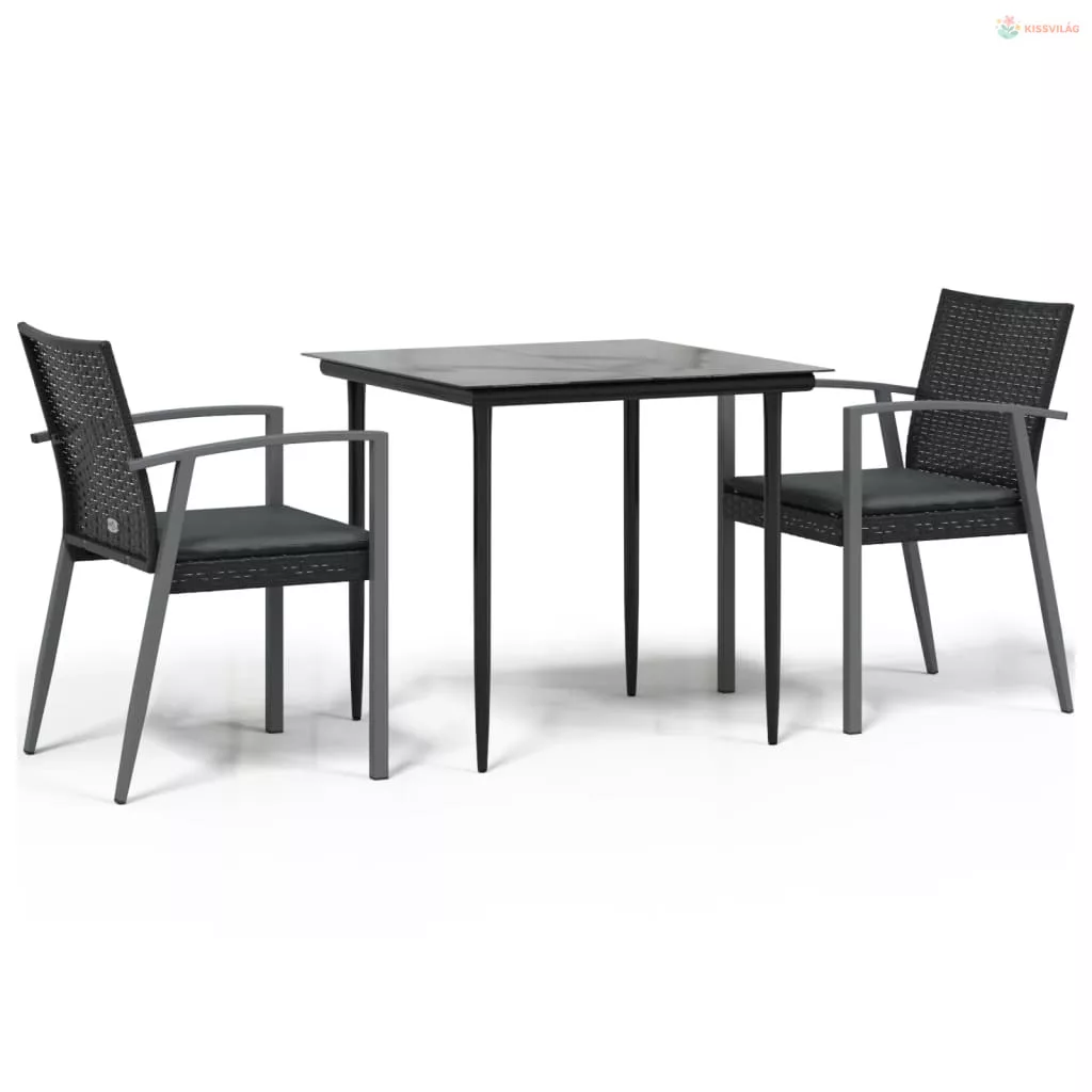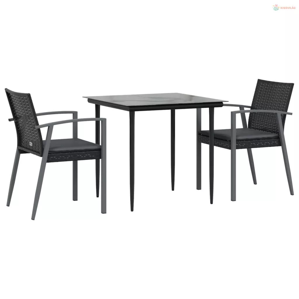 3 részes polyrattan és acél kerti étkezőgarnitúra párnával