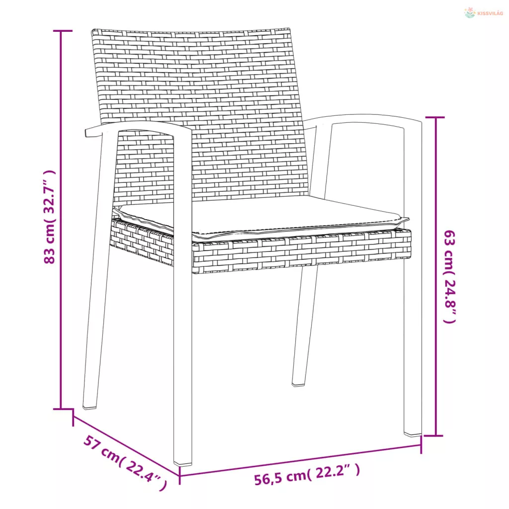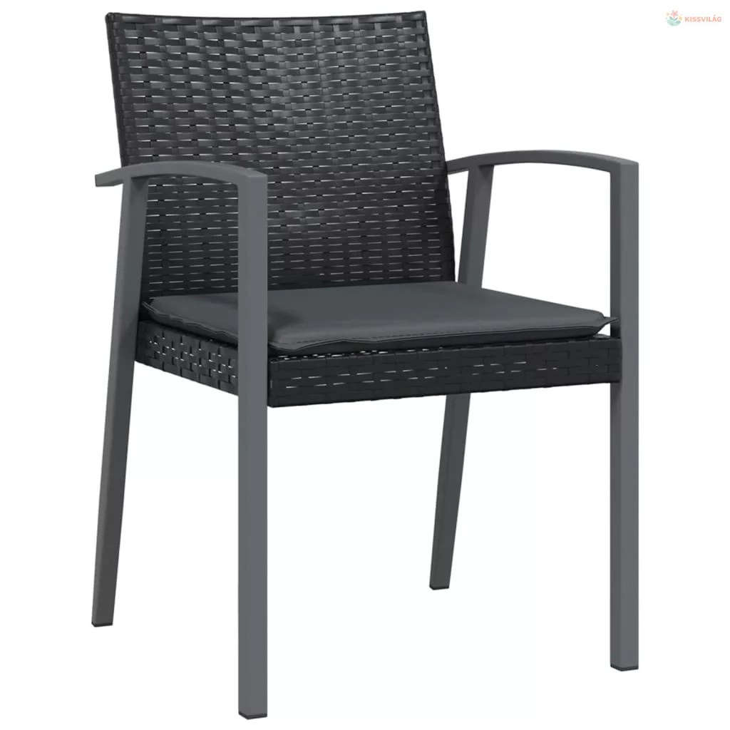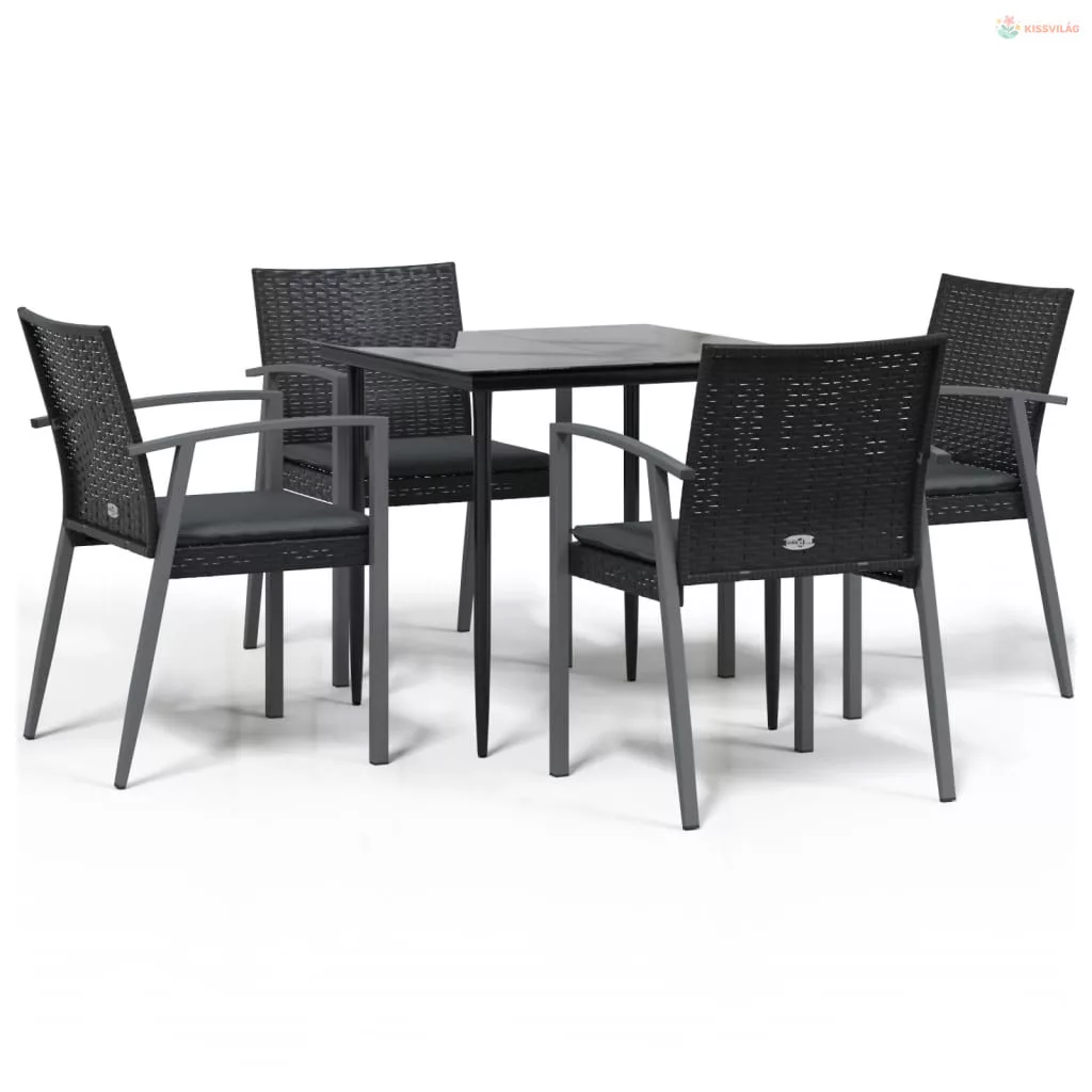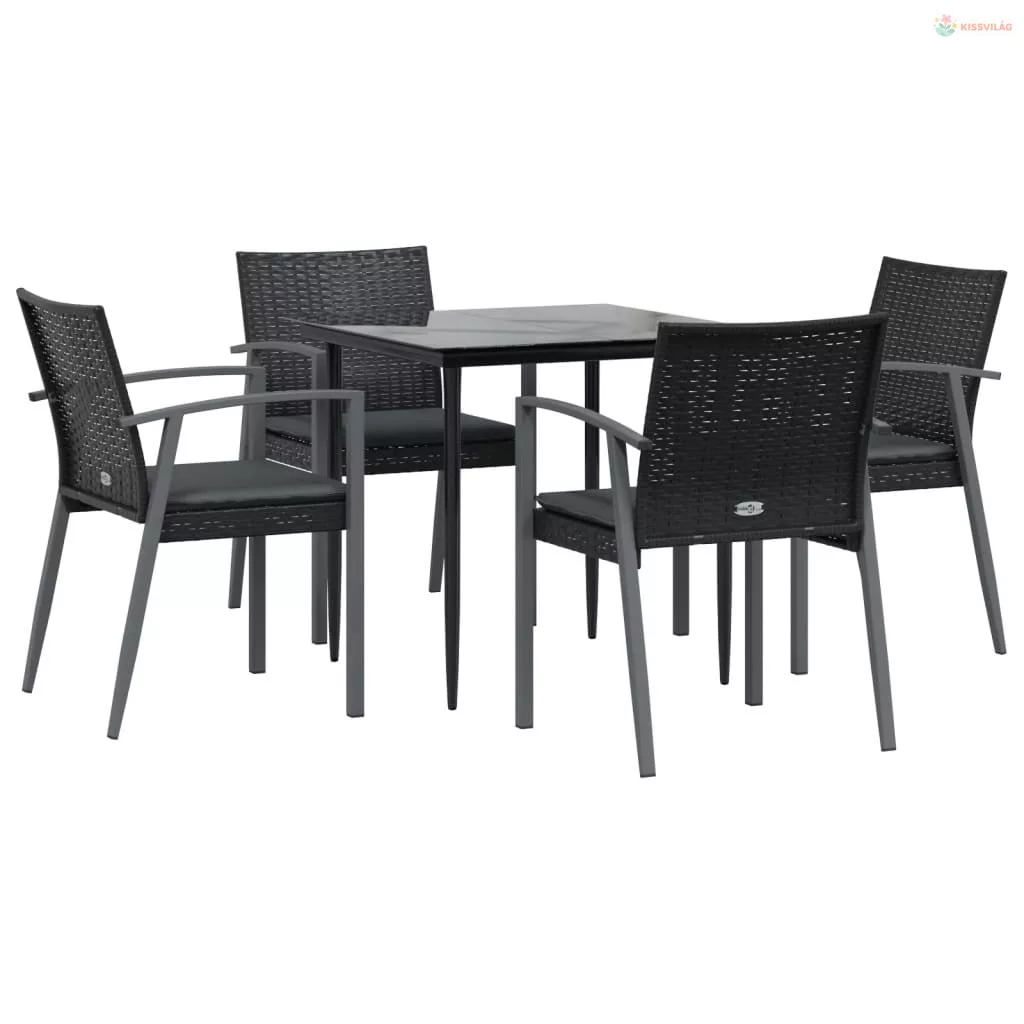 5 részes polyrattan és acél kerti étkezőgarnitúra párnával