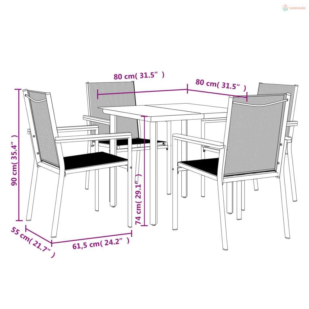 • Asztal mérete: 80 x 80 x 74 cm (Ho x Szé x Ma)