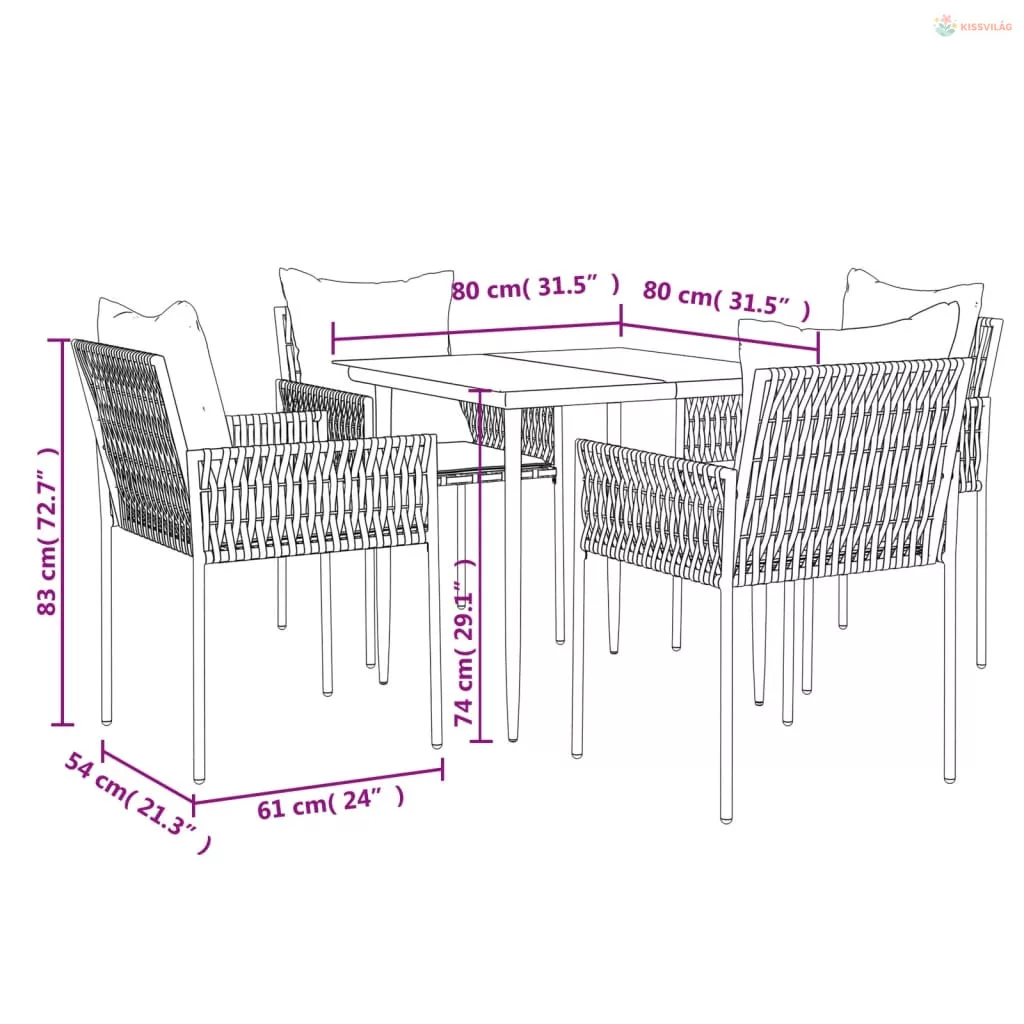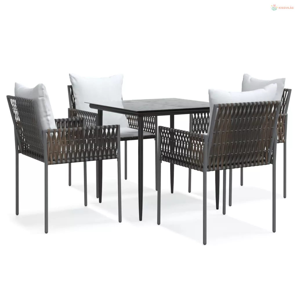 5 részes polyrattan és acél kerti étkezőgarnitúra párnával