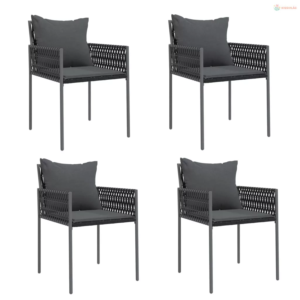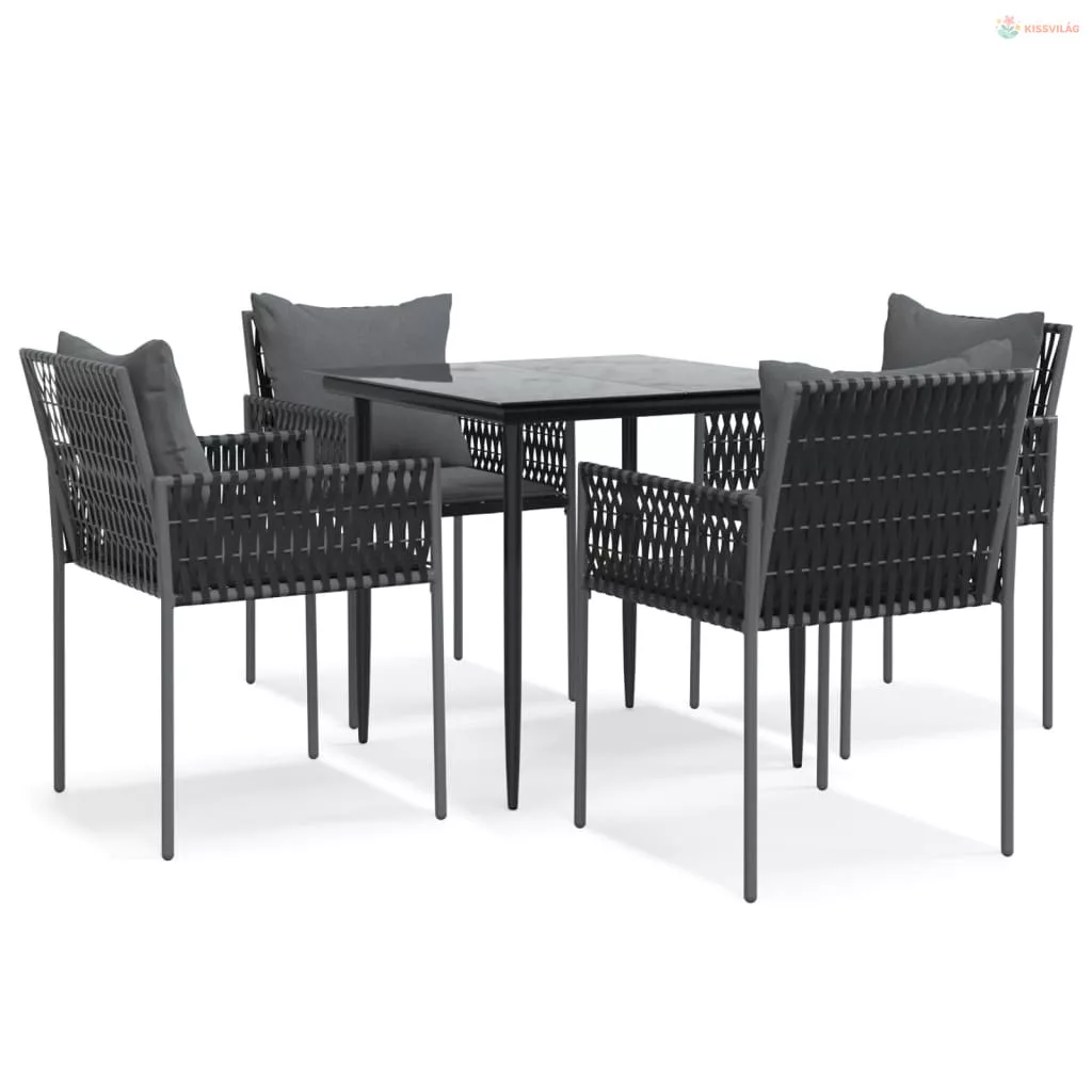 5 részes polyrattan és acél kerti étkezőgarnitúra párnával