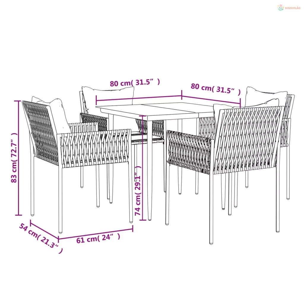 • Asztal mérete: 80 x 80 x 74 cm (Ho x Szé x Ma)