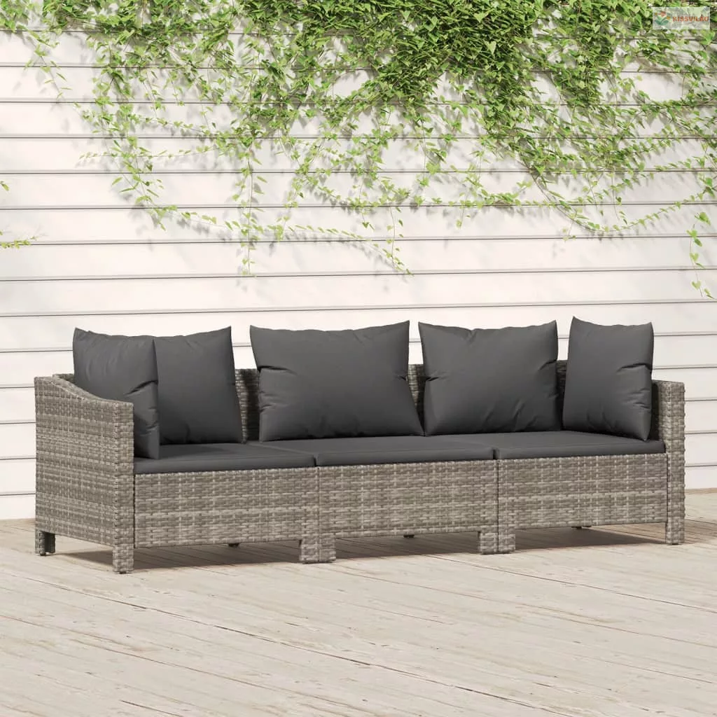 3 részes szürke polyrattan kerti ülőgarnitúra párnákkal