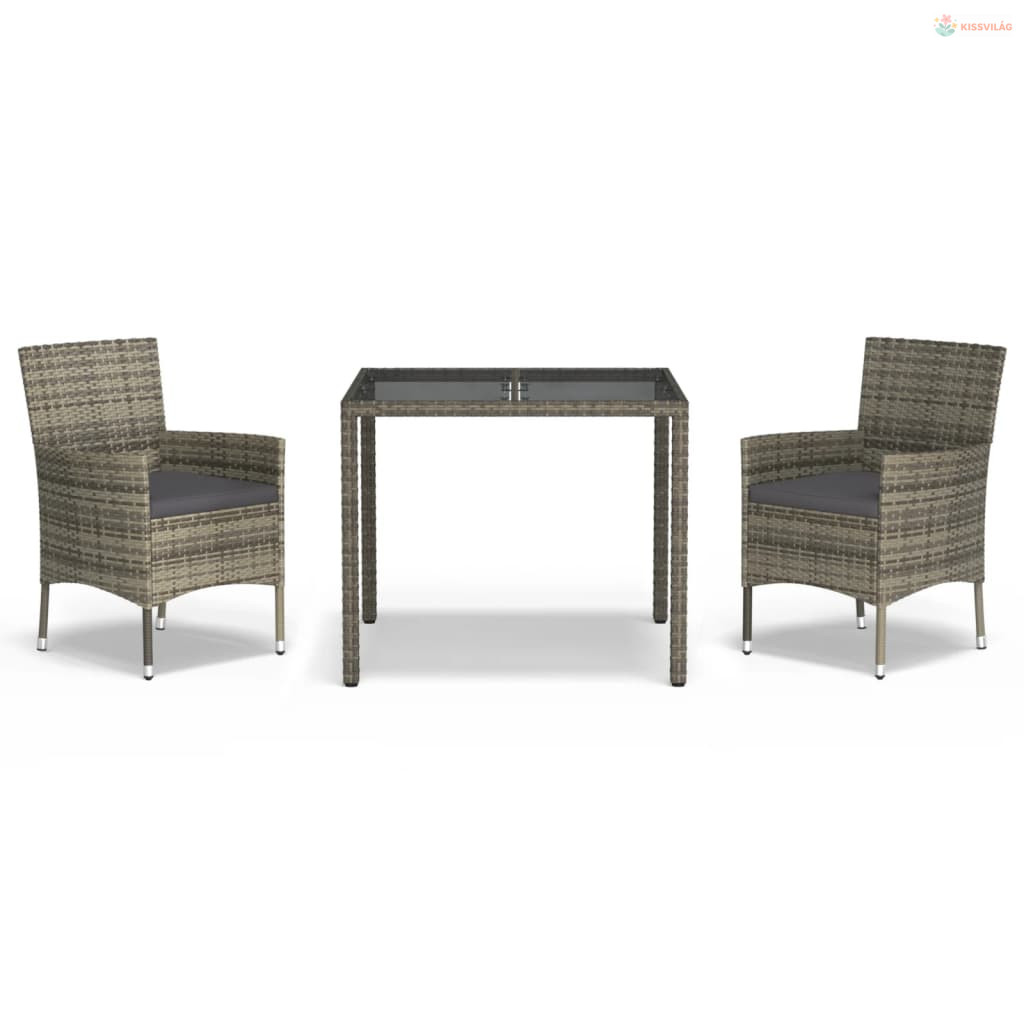 3 részes szürke polyrattan kerti étkezőgarnitúra párnával