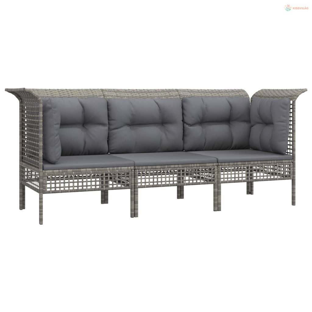 3 részes szürke polyrattan kerti ülőgarnitúra párnákkal