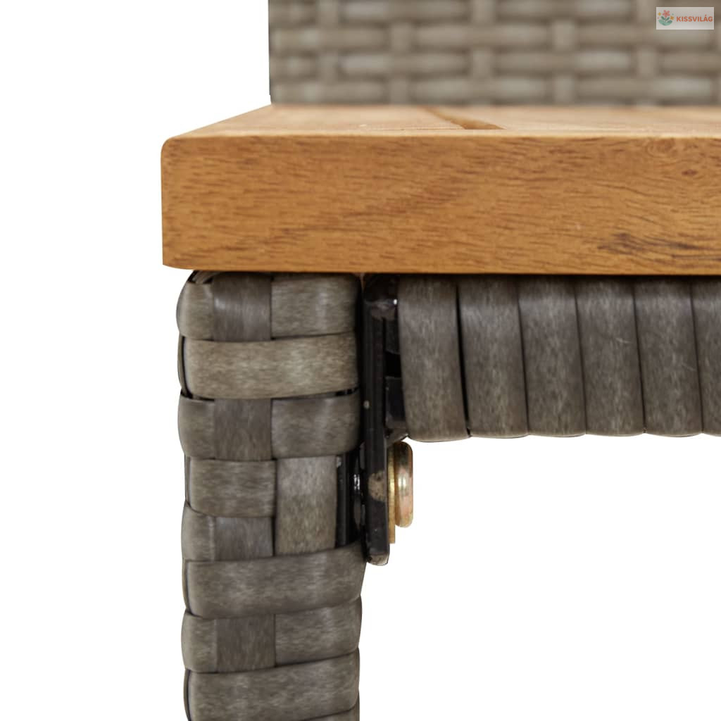5 részes szürke polirattan és tömör akácfa kerti bárszett