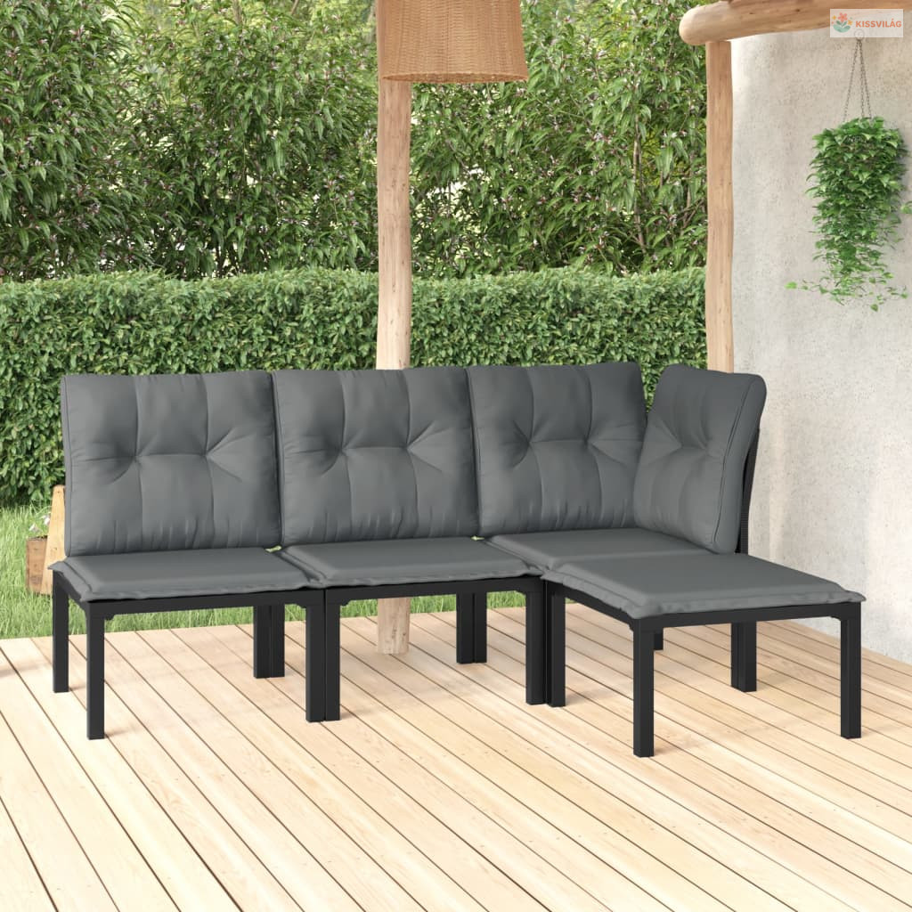 4 részes fekete és szürke polyrattan kerti ülőgarnitúra