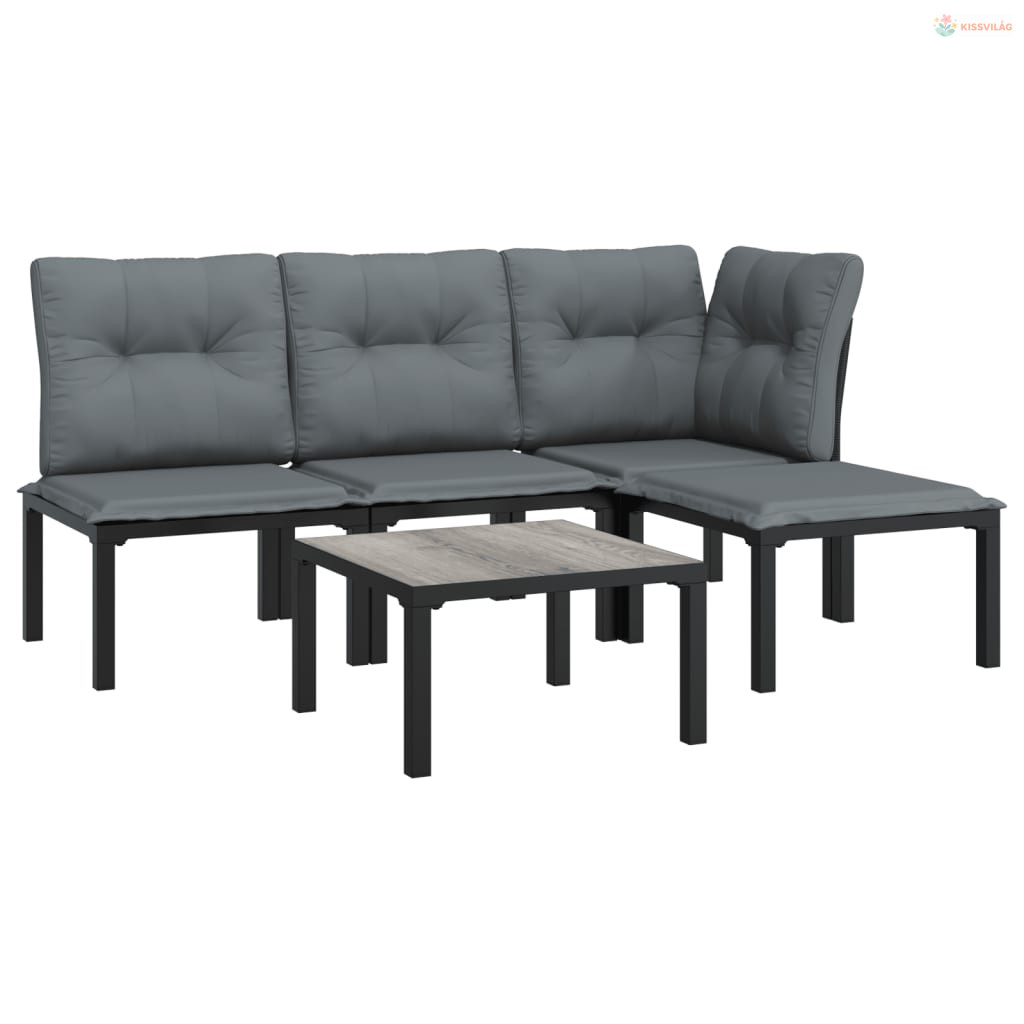 5 részes fekete-szürke polyrattan kerti ülőgarnitúra