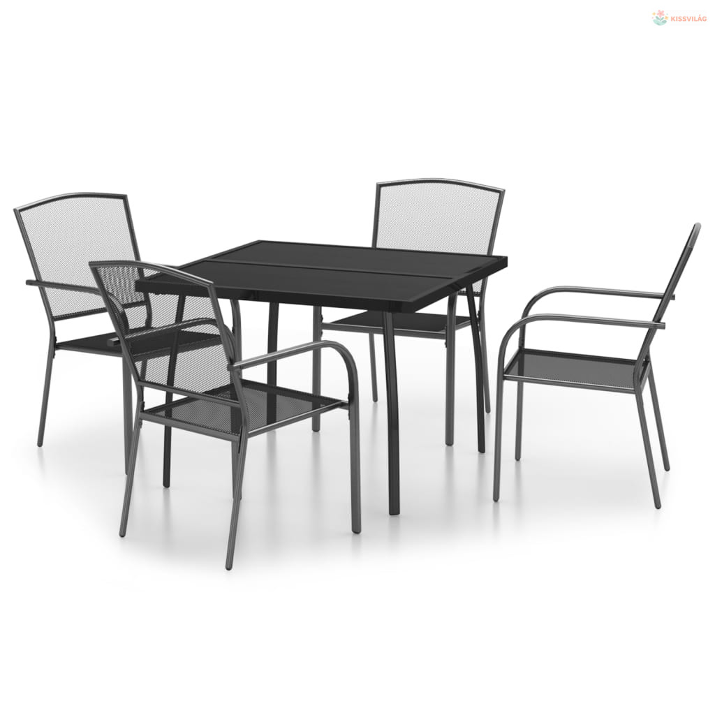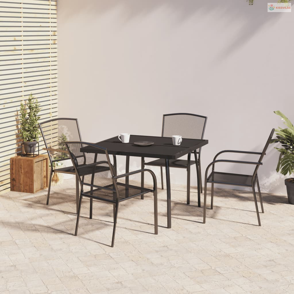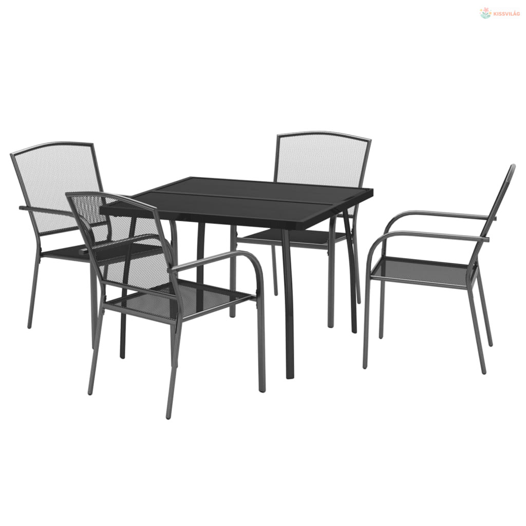 5 részes antracitszürke acél kerti étkezőgarnitúra