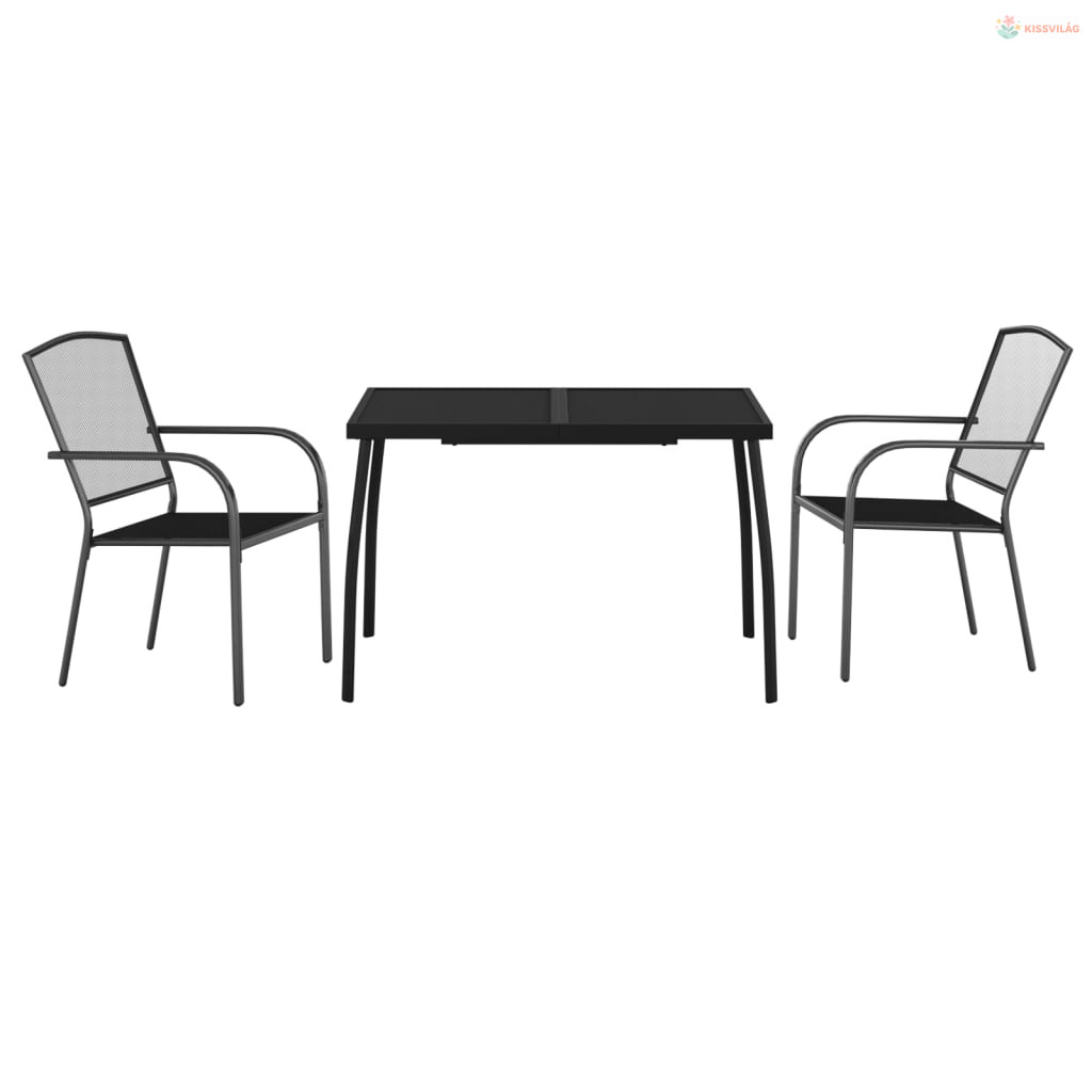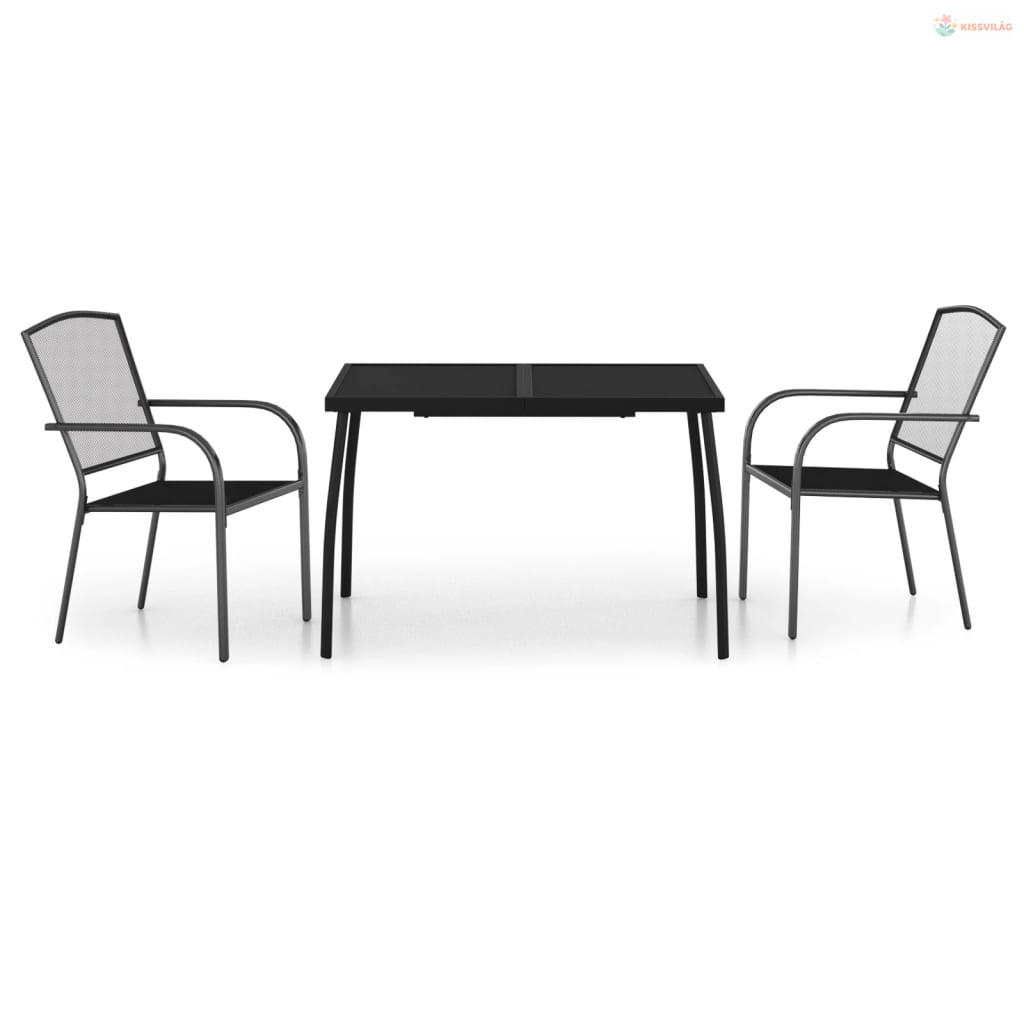 3 részes antracitszürke acél kerti étkezőgarnitúra