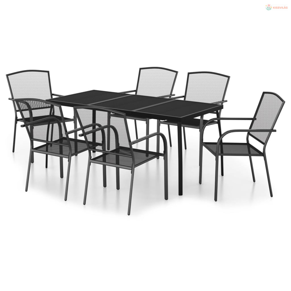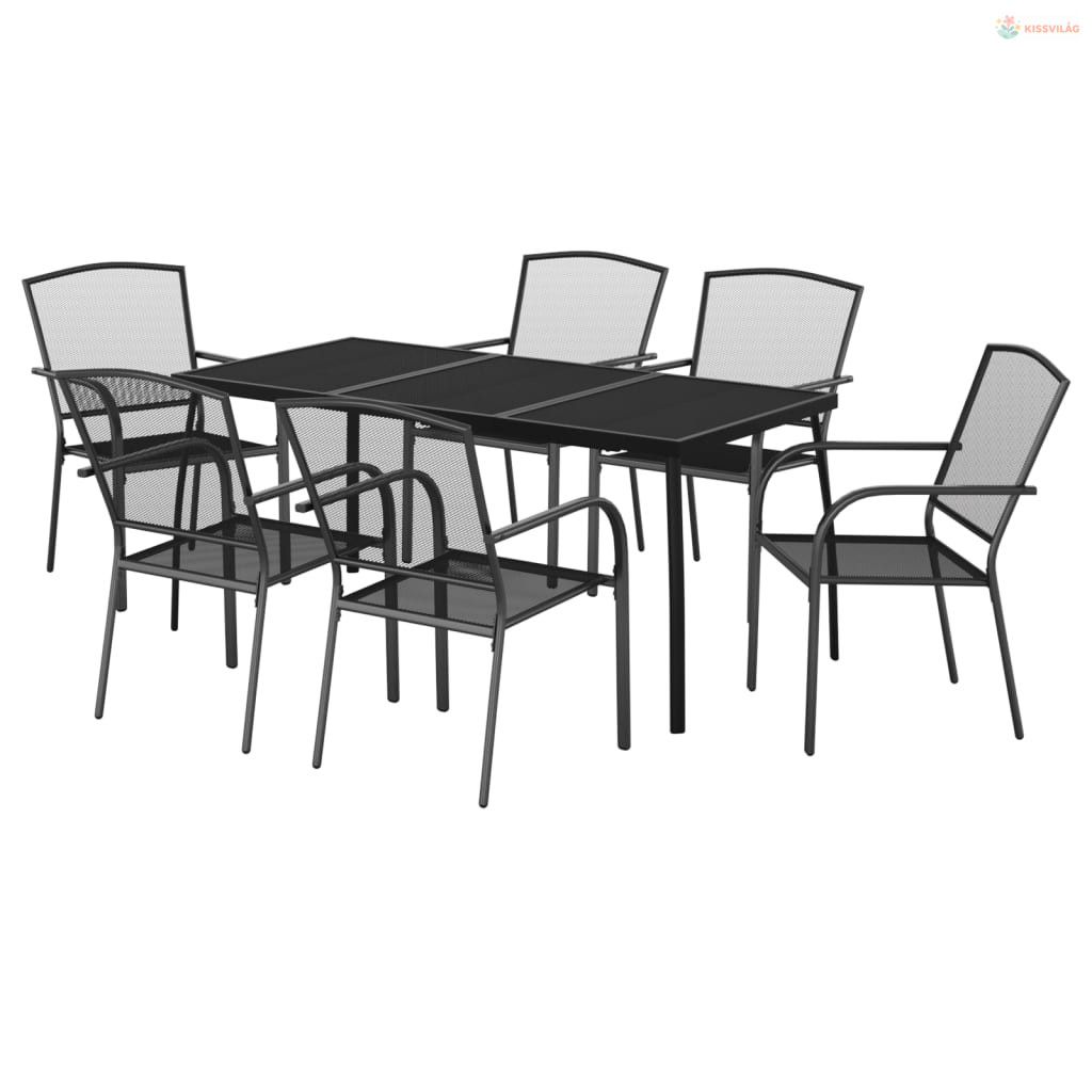 7 részes antracitszürke acél kerti étkezőgarnitúra