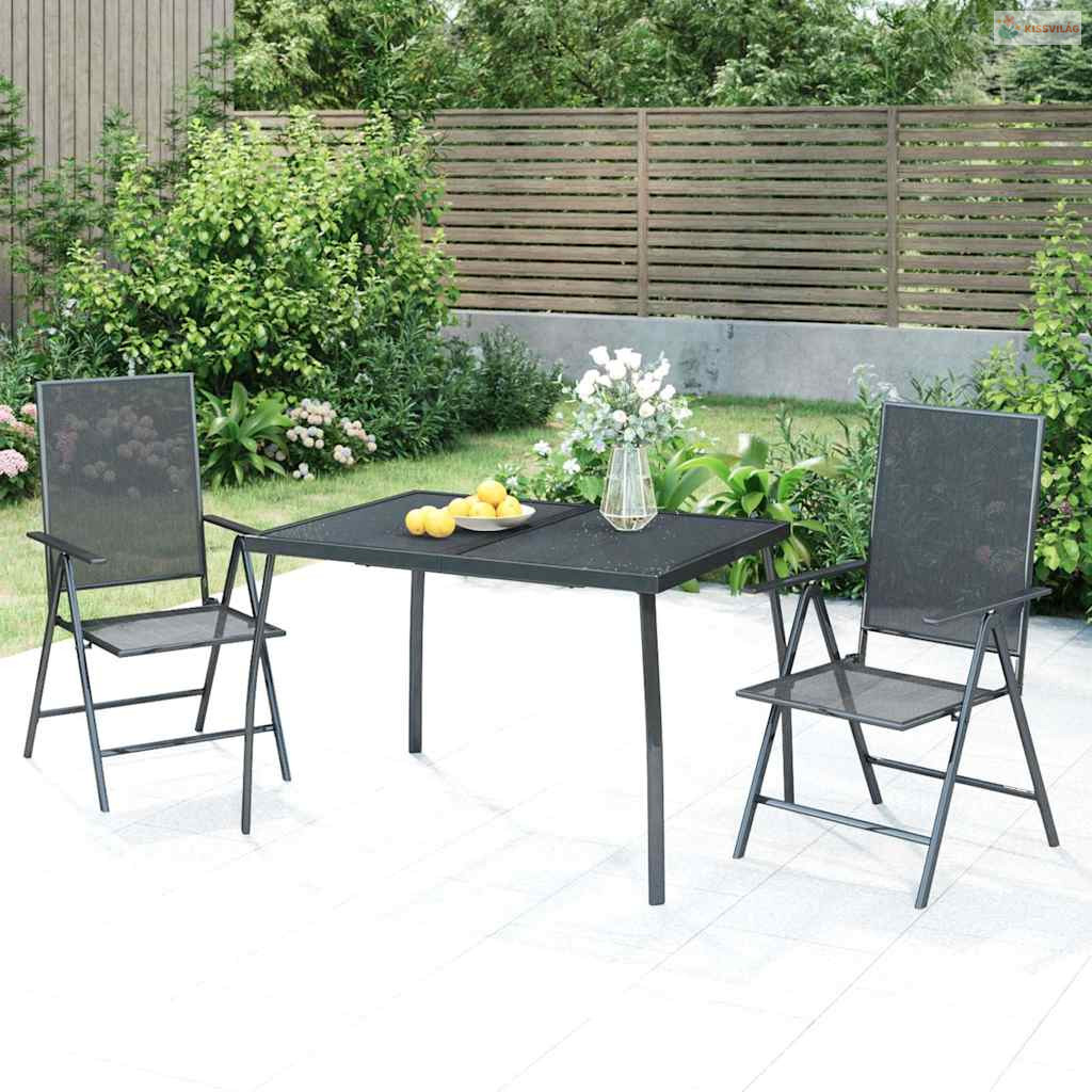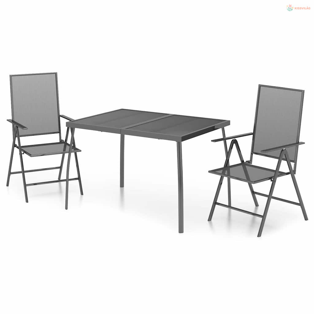 3 részes antracitszürke acél kerti étkezőgarnitúra