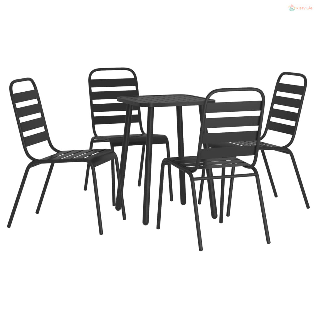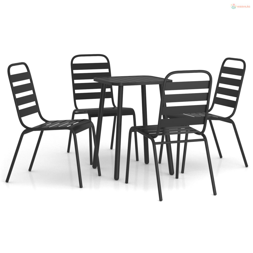 5 részes antracitszürke acél kerti étkezőgarnitúra