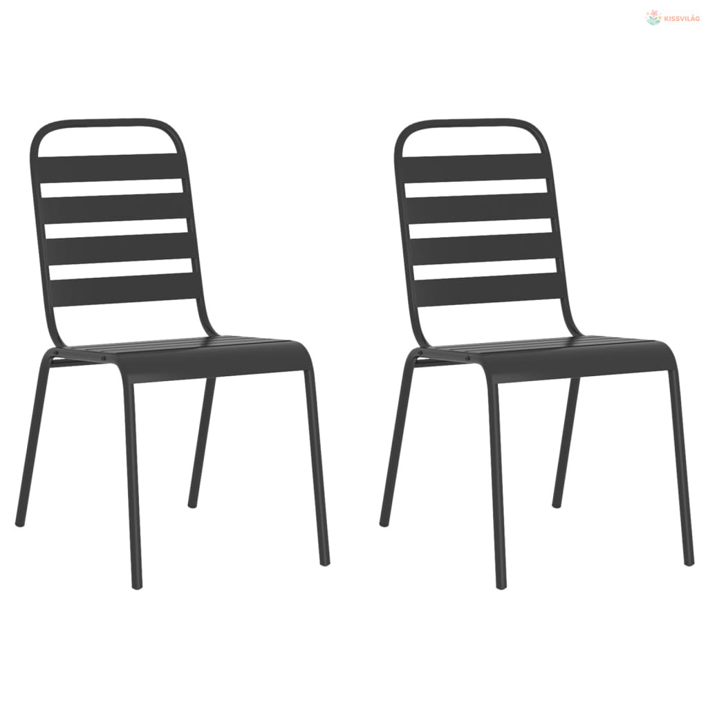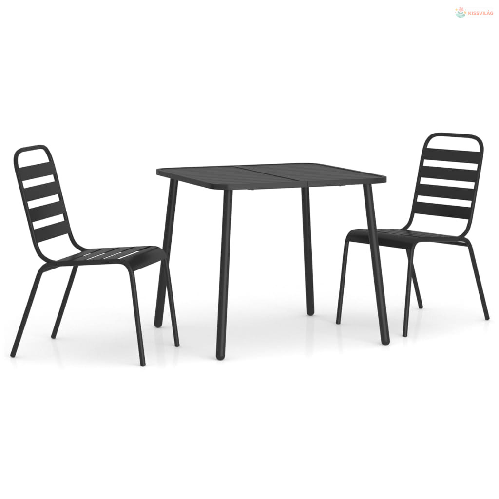 3 részes antracitszürke acél kerti étkezőgarnitúra