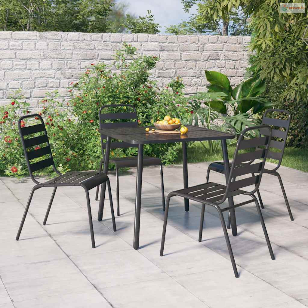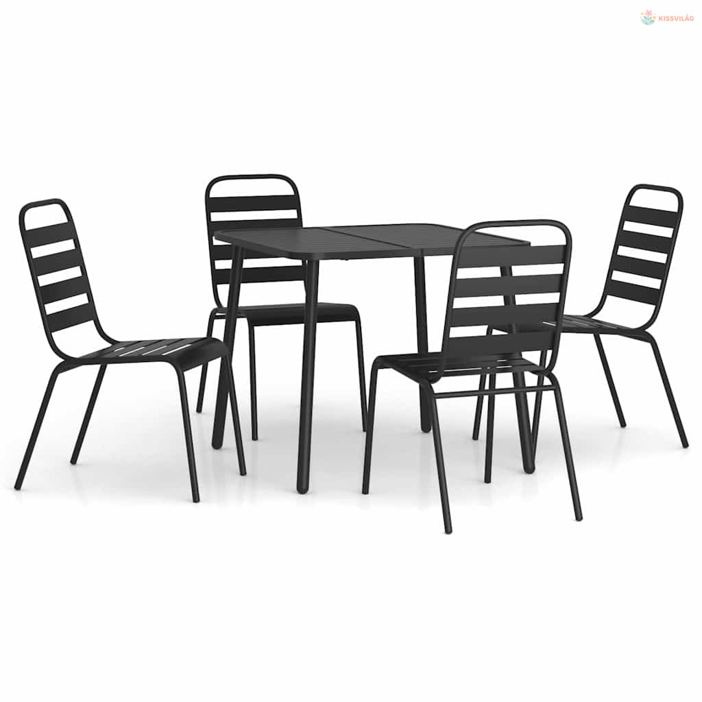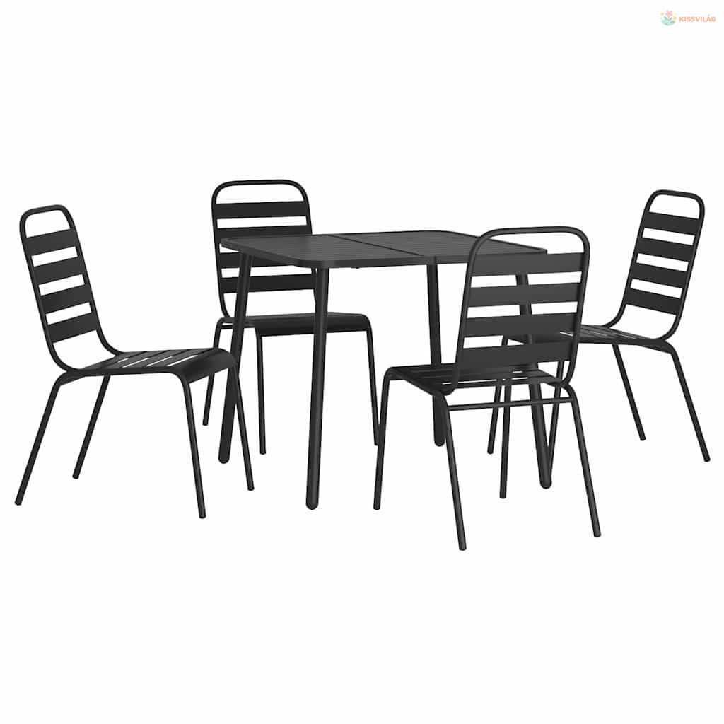 5 részes antracitszürke acél kerti étkezőgarnitúra