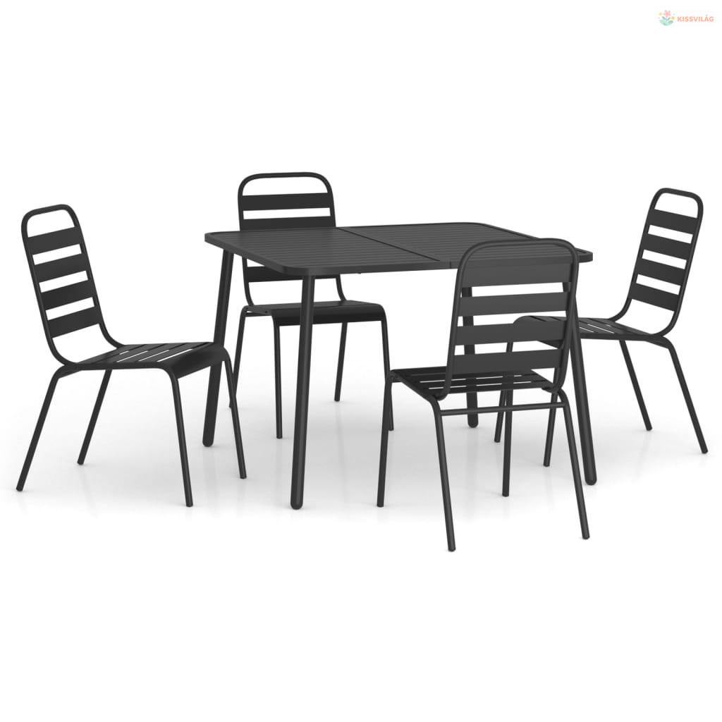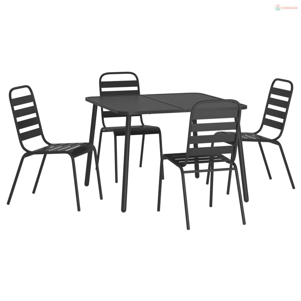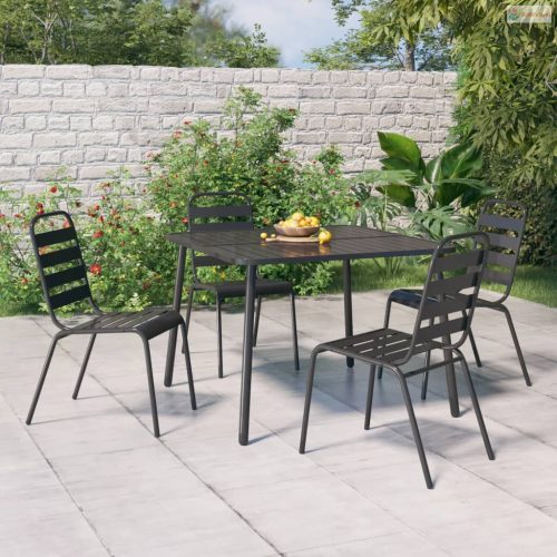 5 részes antracitszürke acél kerti étkezőgarnitúra
