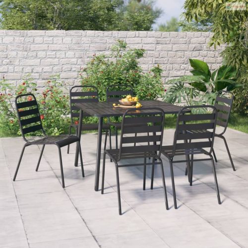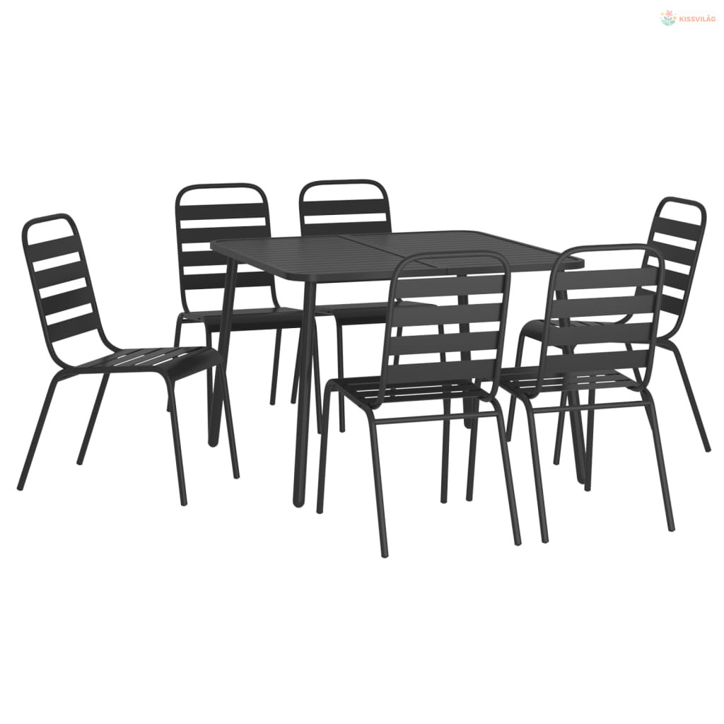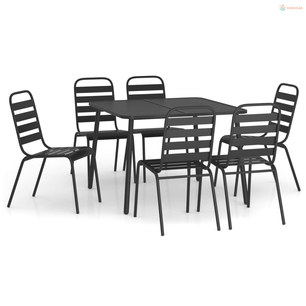 7 részes antracitszürke acél kerti étkezőgarnitúra