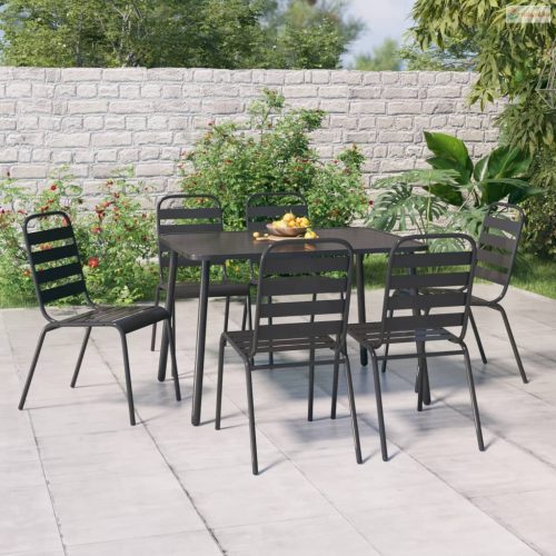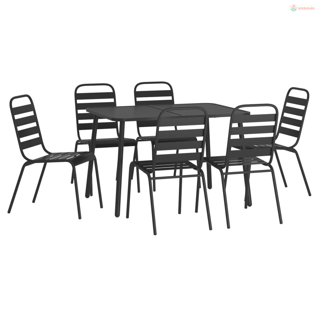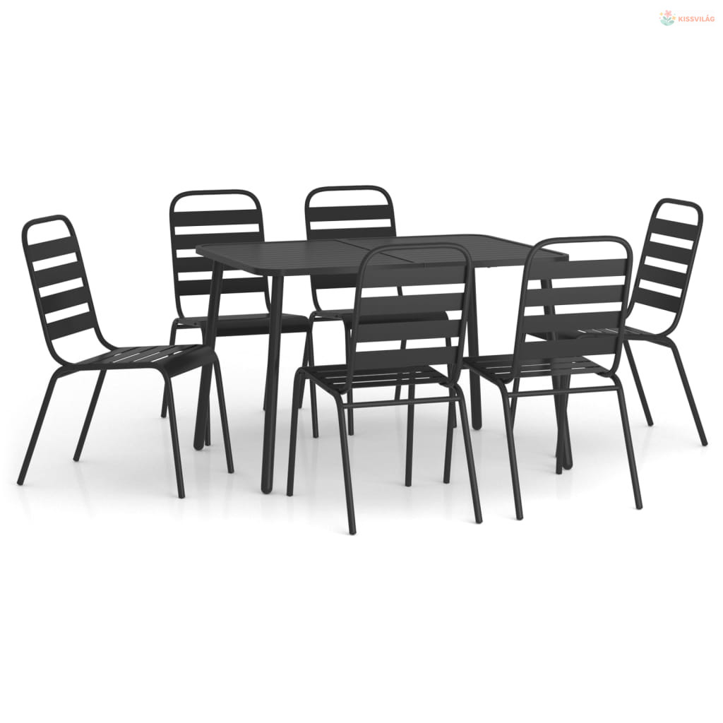 7 részes antracitszürke acél kerti étkezőgarnitúra